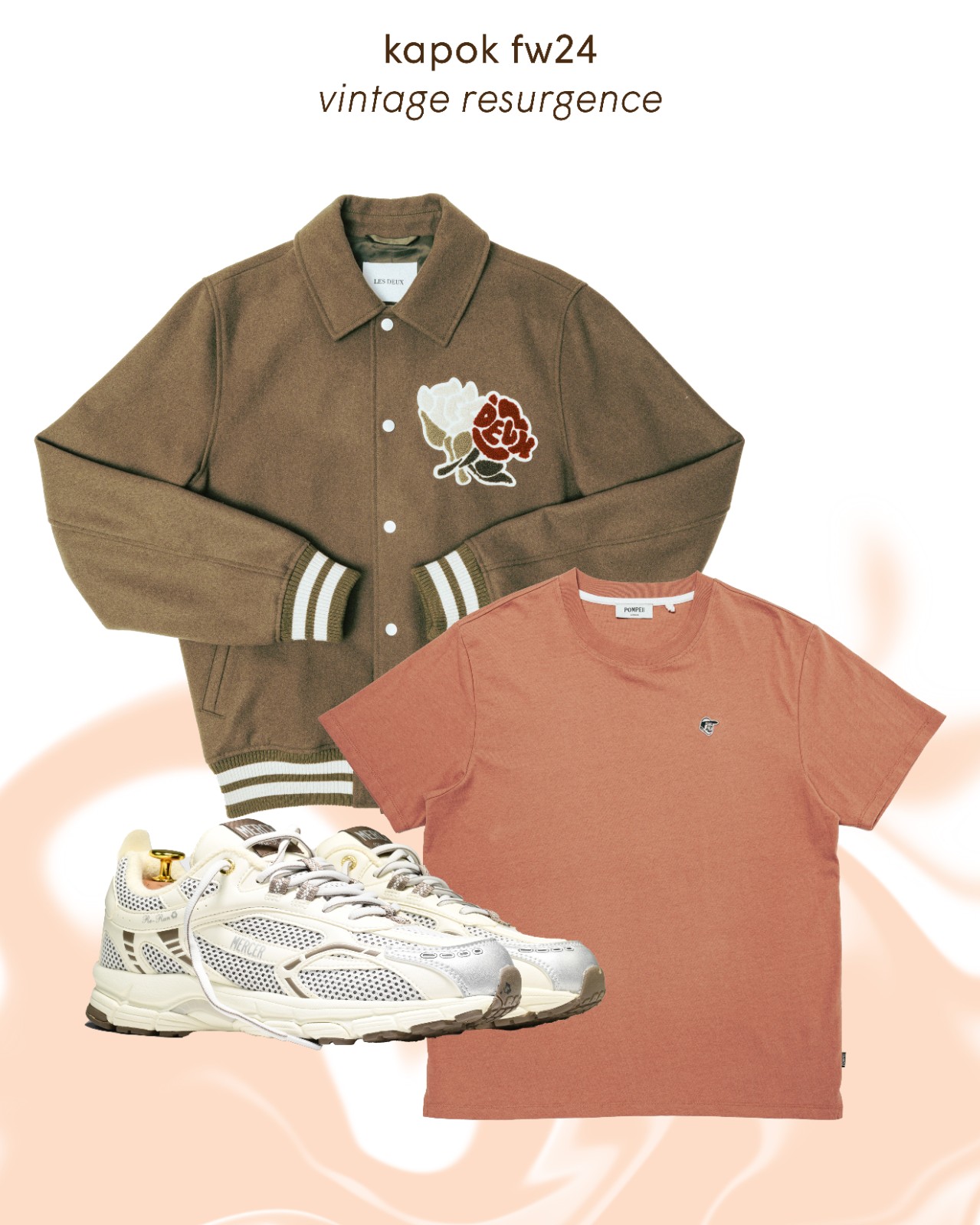 今季亦引入經(jīng)典剪裁單品,呈現(xiàn)復(fù)古風(fēng)潮,向上世紀(jì)70年代、80年代和90年代的懷舊風(fēng)格致敬。Autre Aura寬鬆喇叭袖棉質(zhì)上衣,配有粉色刺繡點(diǎn)綴,為造型增添靈動(dòng)有趣的視覺效果。Les Deux 100%羊毛夾克以復(fù)古印花圖案為靈感、搭配Pompeii Vintage洗水粉色T恤、Norse Project黑色寬腿褲及Mercer運(yùn)動(dòng)鞋,即能塑造街頭復(fù)古風(fēng)。