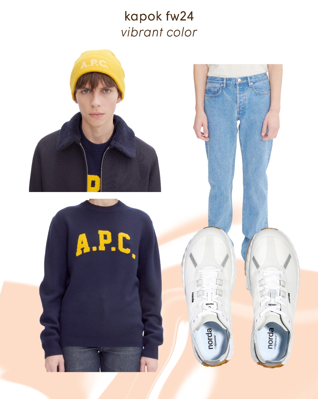 鮮艷色彩與玩味的裝飾構(gòu)成今季風(fēng)格,Dr Bloom的提花V領(lǐng)背心飾以品牌標(biāo)誌性笑臉設(shè)計(jì),10 Decoart的金色花卉圖案珍珠耳環(huán)演繹了極簡(jiǎn)主義。A.P.C.的標(biāo)誌衛(wèi)衣、水洗靛藍(lán)牛仔褲及LOGO毛帽,散發(fā)年輕活力的氛圍,再加上由資深運(yùn)動(dòng)員團(tuán)隊(duì)設(shè)計(jì)的運(yùn)動(dòng)節(jié)norda 001,為搭配增添運(yùn)動(dòng)元素,融合了運(yùn)動(dòng)舒適性和時(shí)尚感。