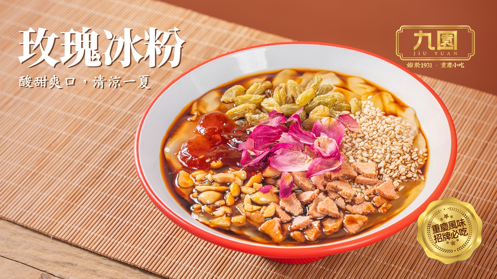 吃重慶小吃必定要試一試特色甜點玫瑰冰粉,冰粉鋪底,加入玫瑰醬,花生碎,山楂碎,葡萄乾等, 調(diào)出來的口味甜絲絲,入口冰冰涼涼, 吃過麻辣 重慶菜式,最適合吃上這個冰粉,頓覺分外冰爽。(記者:Katherine)