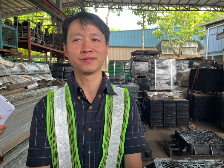 渠蓋鑄造廠負(fù)責(zé)人劉偉文講解製造「特色渠蓋」細(xì)節(jié)。
