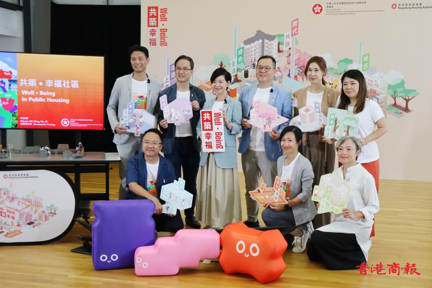 房屋局局長(zhǎng)何永賢及房屋署人員與空間例子模型合照。