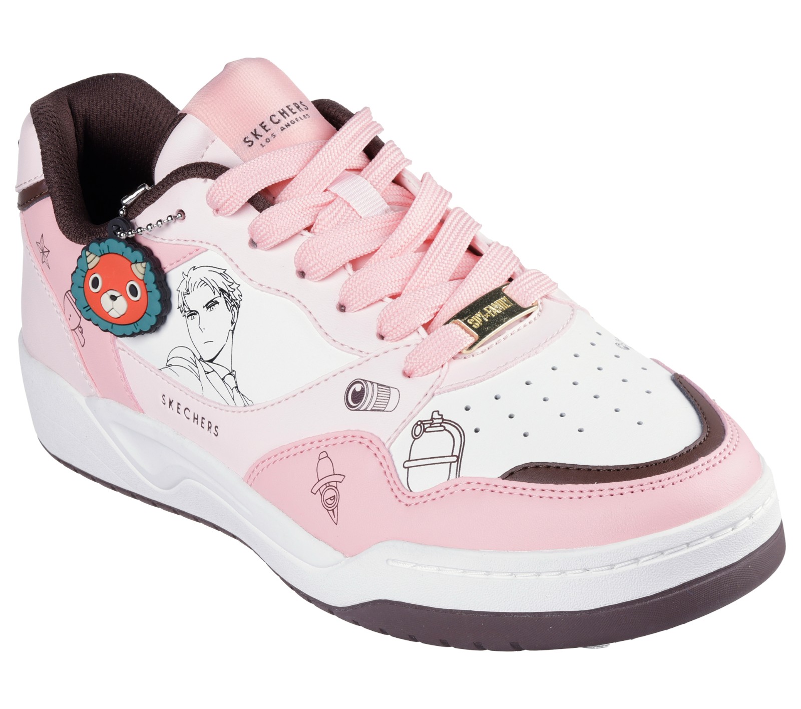 乘著動(dòng)漫的人氣,品牌推出以KOOPA COURT系列作為聯(lián)乘計(jì)劃壓軸登場的鞋款,並邀請(qǐng)品牌大使車銀優(yōu)試穿。鞋款以美式復(fù)古基調(diào)糅合計(jì)劃主打的時(shí)尚玩味設(shè)計(jì)元素,鞋面採用人造皮革營造層次感,分別將內(nèi)外鞋身、後跟、鞋頭氣孔等化成畫布,飾上三大角色的素描圖案,鞋帶位置的金屬名牌換成金色並印有「SPY×FAMILY」字樣,對(duì)應(yīng)後跟沿邊的相同字樣設(shè)計(jì),同時(shí)掛上奇美拉先生吊飾作點(diǎn)綴。該系列鞋款採用Air-Cooled Memory Foam透氣記憶棉鞋墊、吸震緩衝中底和彈性抓地外底,讓穿著者長時(shí)間感覺舒適自在。系列共推出5個(gè)配色,為男女共用鞋款,全部均以男裝尺碼展示,女士可選擇小兩碼鞋款。