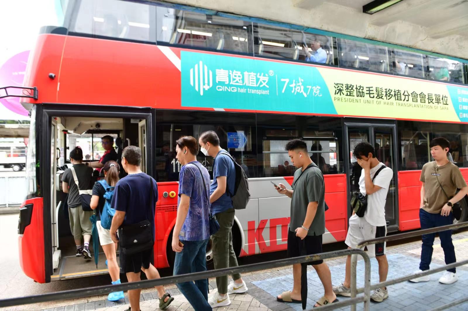 在紅隧轉(zhuǎn)車站,有大批市民排隊(duì)等候過海巴士,一度排到行人天橋,未見混亂。