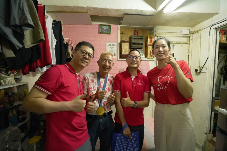 頂圖圖説:馬會義工隊於周末到深水埗區(qū)進行長者中秋探訪活動。