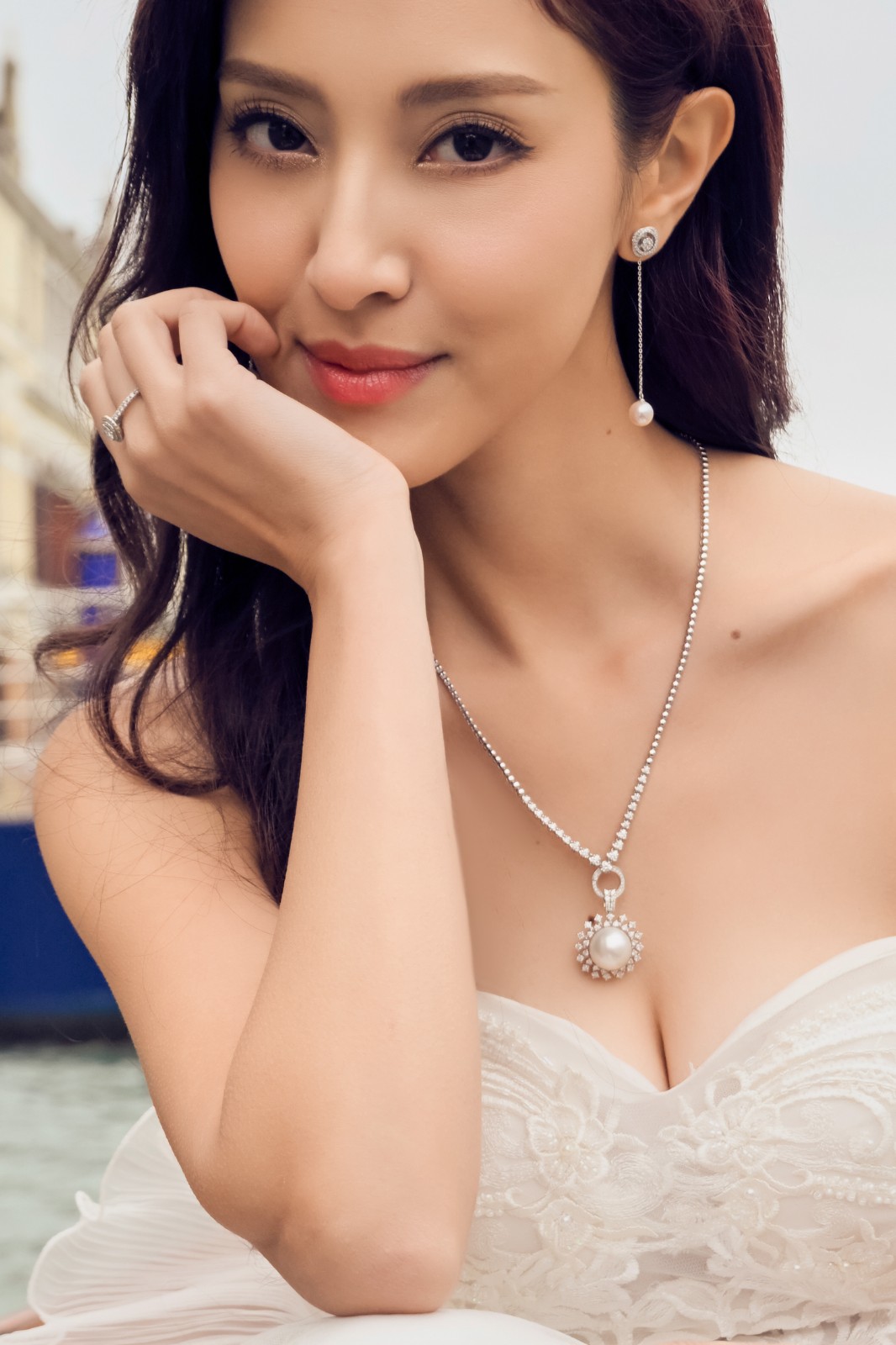 Graceful Harmony珠寶系列設計以鑲鑽的環(huán)形「V」字母為主軸,該元素不僅代表品牌的核心理念,同時也象徵維納斯女神(Venus),是典雅與美的結(jié)合,同時精緻的雙層外圈設計,讓外觀更具層次感、立體感。鏈身採用折疊式三行平衡設計,體現(xiàn)女性要兼顧家庭與事業(yè)的,並反映對自信和幸福的追求。系列首飾選用了珍珠與209粒鑽石、共同構(gòu)成393件設計元素。209粒鑽石的數(shù)字寓意圓滿,象徵人生中的愛與和諧。簡約而優(yōu)雅的線條,襯托穿戴者知性美。其中短身Choker頸鏈款的項鏈恍如為陳凱琳量身打造,復古優(yōu)雅。