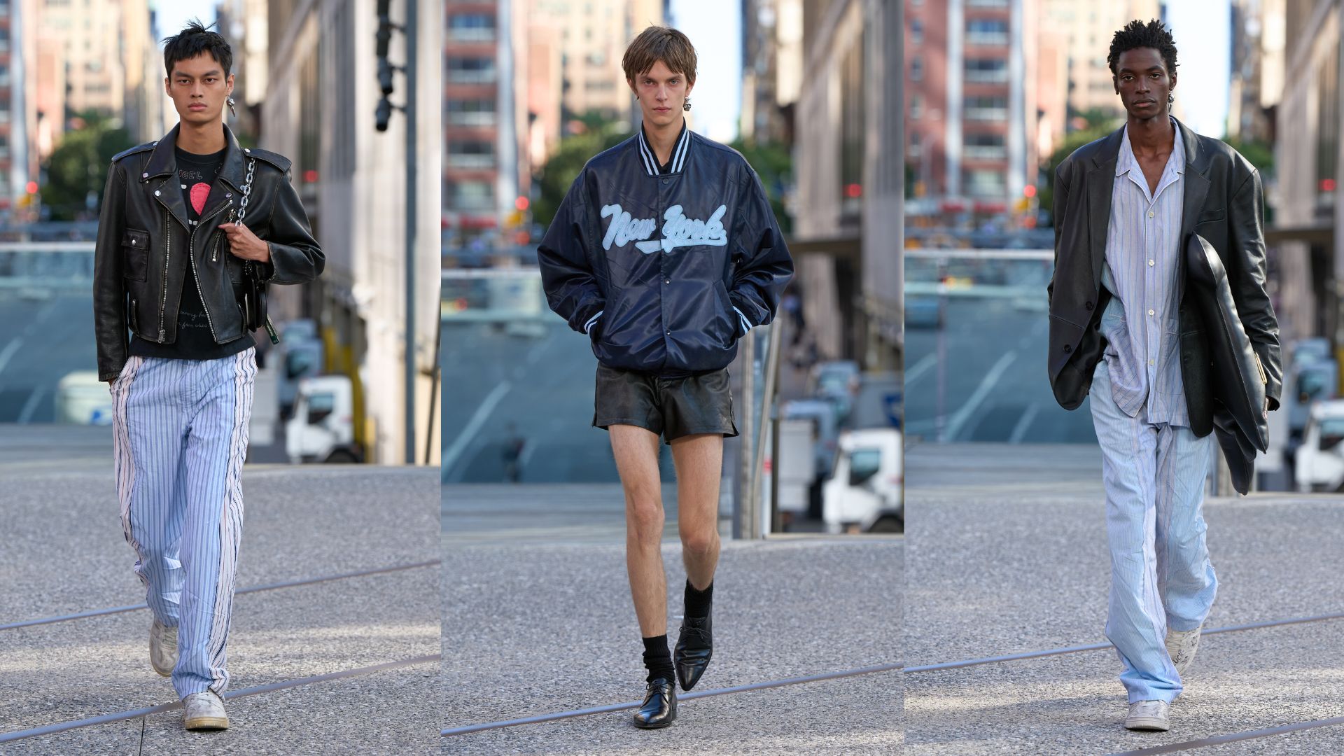 印花T恤演繹了標誌性流行和搖滾音樂元素,並將做舊的摩托夾克與直筒疊穿。 另一款文字復(fù)古裝飾的白色T恤, 向20世紀40年代服飾風(fēng)格致敬的同時,又展現(xiàn)DIY龐克美學(xué)。該系列亦是前兩季的設(shè)計理念,包括利用再生皮革和麂皮打造的開衫夾克,以及對尾燕服夾克和「睡衣風(fēng)」長褲進行了全新設(shè)計,採用的皺褶和褪色處理使設(shè)計更充滿個性。