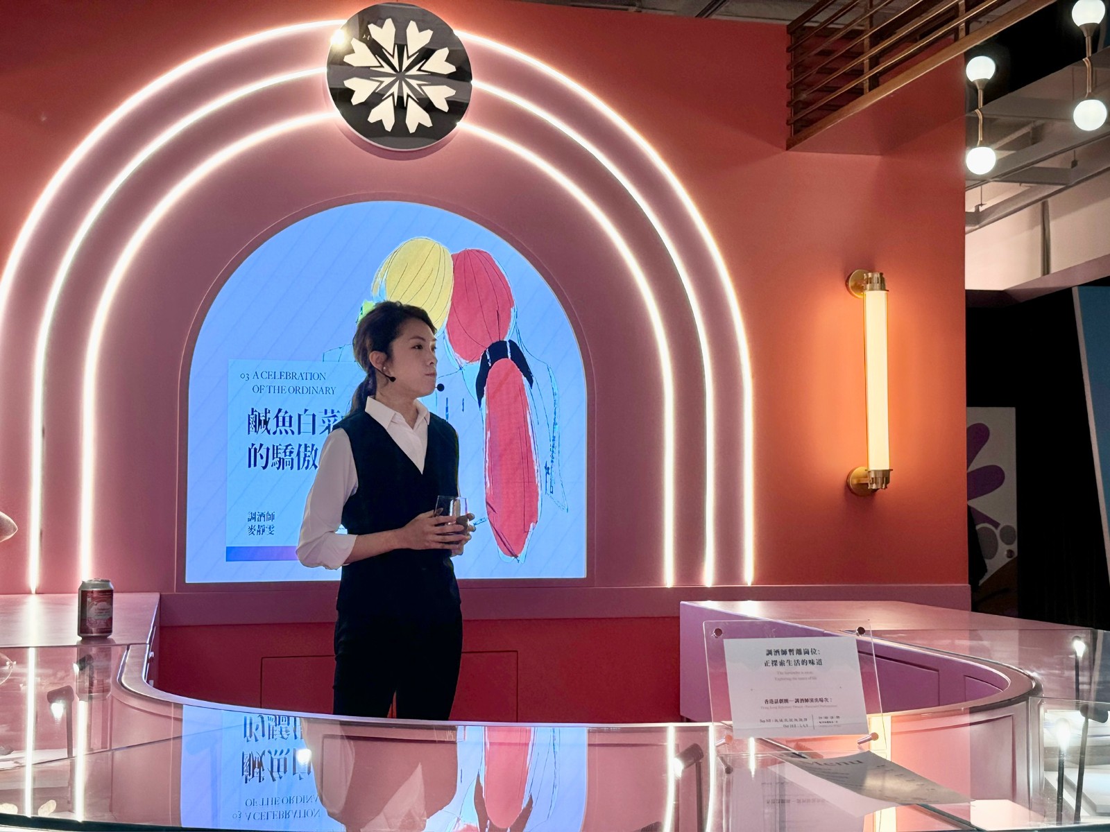 「五味雜陳」專區(qū)設(shè)計(jì)成一間酒吧,陳列不同的故事。世界上存在著不同形式的愛,戀情、親情、友情,愛己愛世界萬(wàn)物等,同樣都蘊(yùn)藏著同一種不想捨棄的力量,全都混雜著多重韻味,就像一間酒吧,五味雜陳。來(lái)自香港話劇團(tuán)的演員高翰文及麥靜雯將化身成調(diào)酒師,為觀眾娓娓道來(lái)一個(gè)個(gè)甜酸苦辣愛的故事,配以不同味道的飲料,讓觀眾沉浸在多重感觀的空間,體驗(yàn)昇華。在「情感絮語(yǔ)」專區(qū),觀眾可戴上丹麥品牌 Bang & Olufsen 耳機(jī),用耳朵感受不同樂(lè)章傳遞的情感力量。