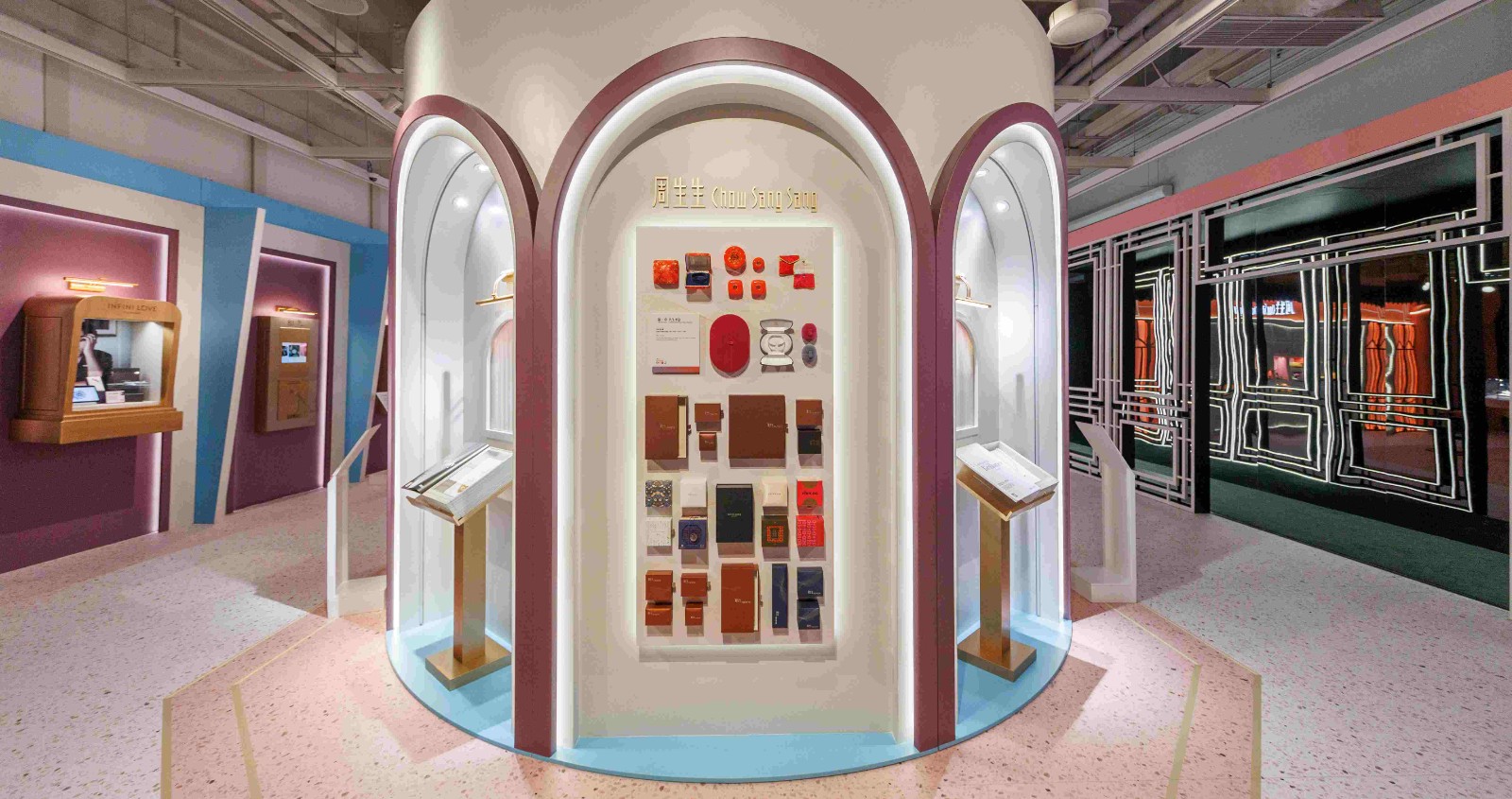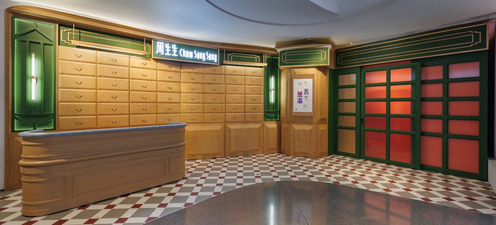 入口設(shè)計(jì)為懷舊的百子櫃,引領(lǐng)參觀者回到品牌的歷史起點(diǎn),展開一段珠寶故事之旅。