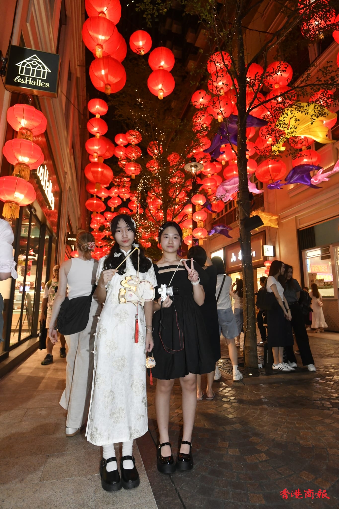 市民Mia與Chloe認為利東街綵燈會很漂亮。記者 蔡啟文 攝