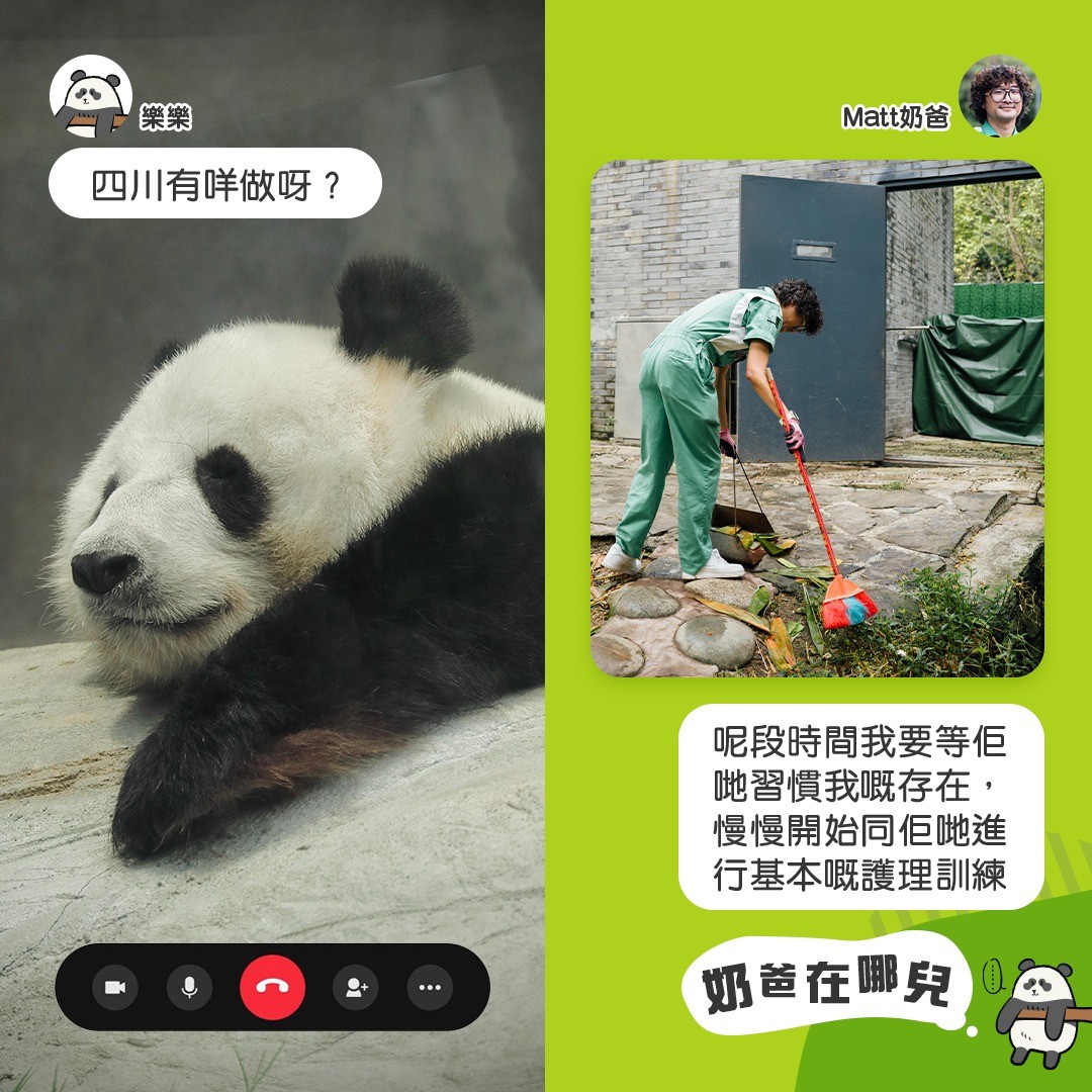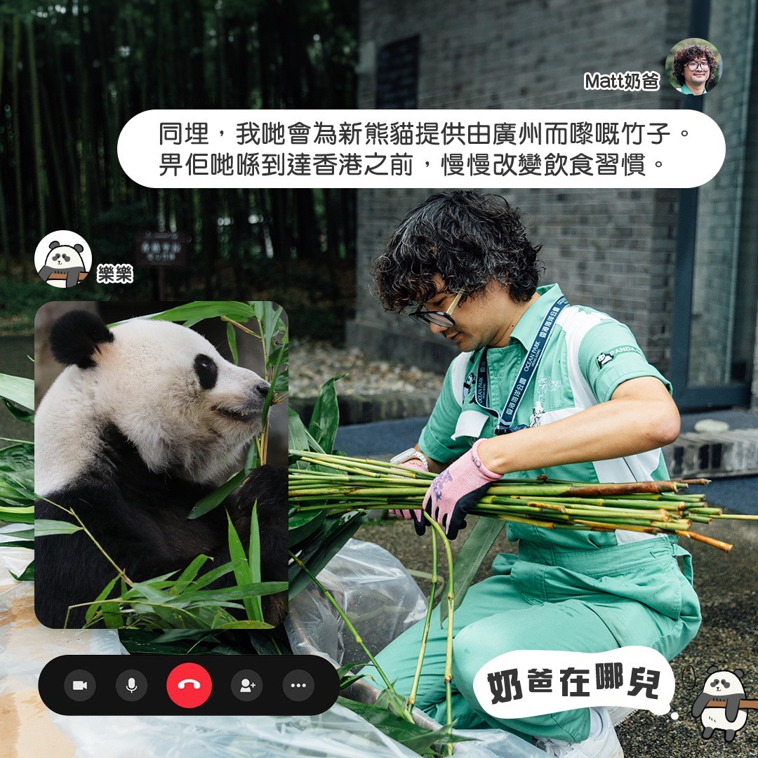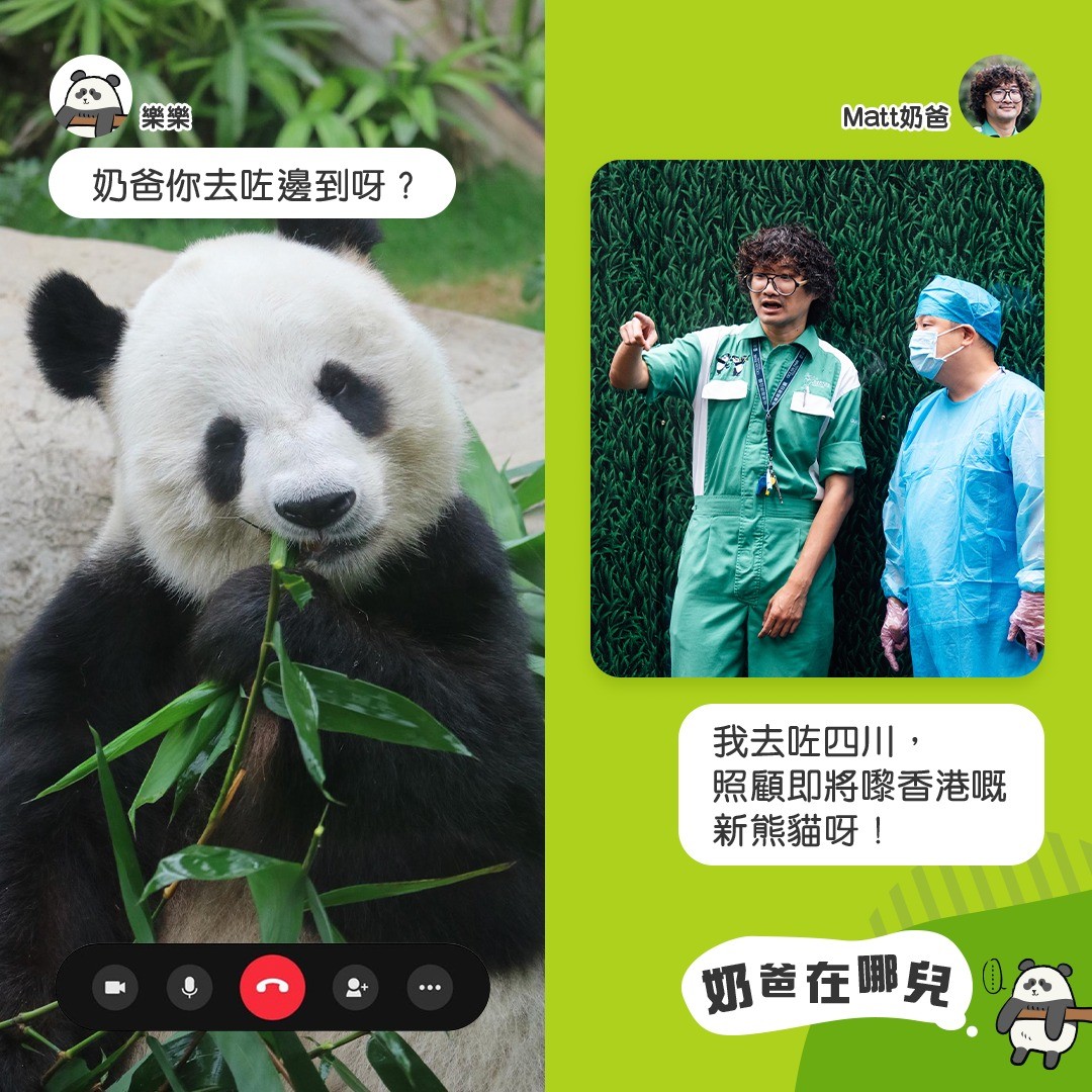 海洋公園在帖文中模擬「樂(lè)樂(lè)」與奶爸視像通話。Matt表示,為了多了解即將到港的大熊貓,包括牠們的特徵、食物偏好及行為,他早在7月就已經(jīng)到了四川。