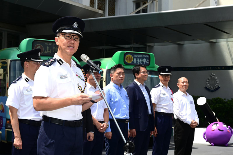 警方港島總區(qū)防騙盾行動(dòng)今日(19日)舉辦「防騙專(zhuān)線(xiàn)小巴」啟動(dòng)禮,推出全新的防騙專(zhuān)線(xiàn)小巴於港島區(qū)5條熱門(mén)專(zhuān)線(xiàn)小巴路線(xiàn)(56A、4C、1、30及48M) 上貼上車(chē)身廣告,為期3個(gè)月,廣告以港島4個(gè)警區(qū)的特色地標(biāo)作藍(lán)本,結(jié)合各類(lèi)型常見(jiàn)的騙案手法,以簡(jiǎn)單易明的方式展示防騙資訊。