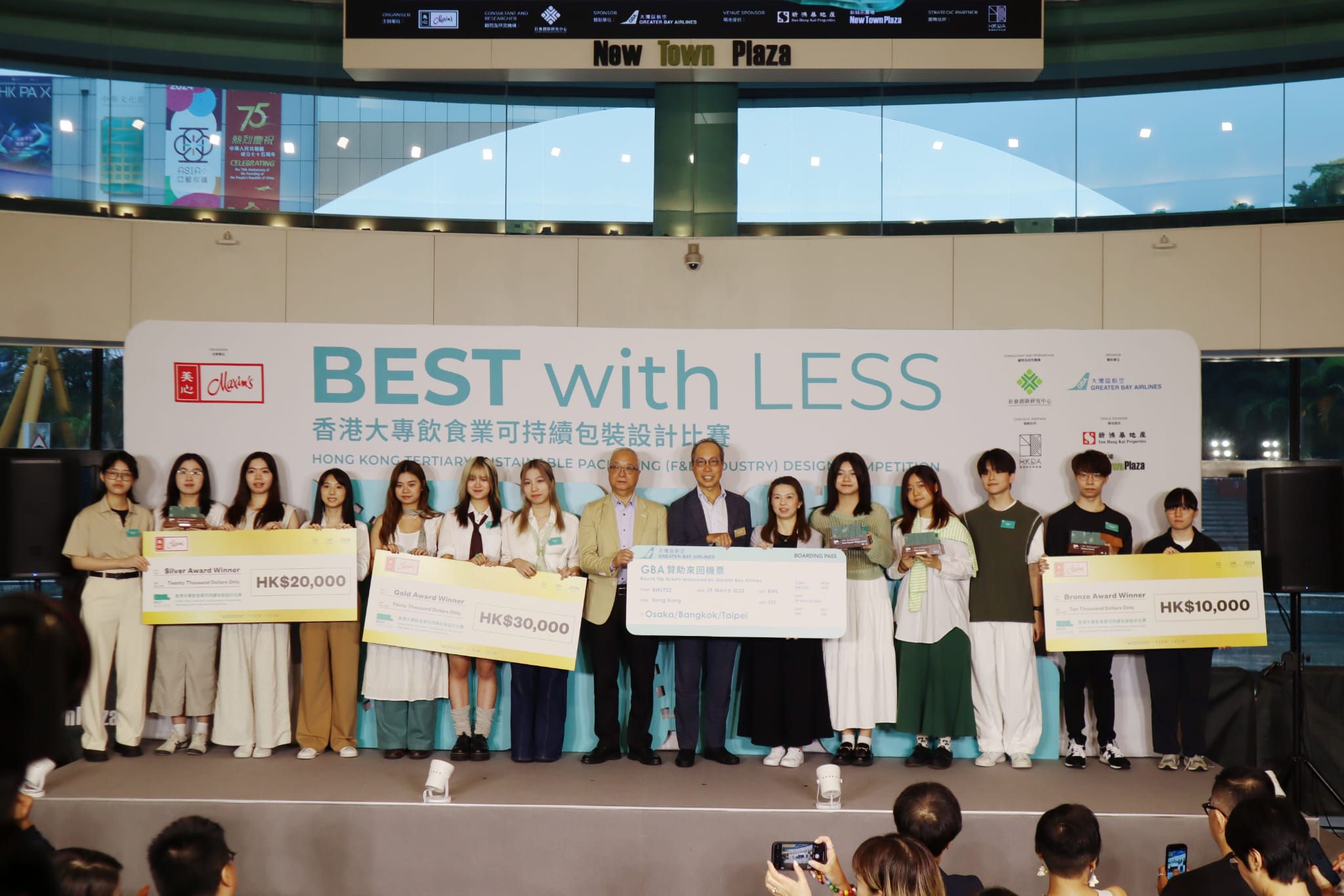 「BEST with LESS 香港大專飲食業(yè)可持續(xù)包裝設(shè)計比賽」的冠、亞、季軍分別為綠饗 GREENMAX、自信門派CONFIDENT SECT、傳意達無限VC TO THE INFINITY,他們會贏得美心獎學(xué)金及由大灣區(qū)航空贊助由香港出發(fā)之免費來回機票,其作品亦將有機會被美心旗下餐廳採用。至於「優(yōu)異創(chuàng)作獎」分別是RHIKNOWLES 、WINGIT、V523 STUDIO,最受歡迎設(shè)計獎同樣由冠軍團隊綠饗GREENMAX奪得,可獲美心飲食禮券及獎學(xué)金,總值1萬元。