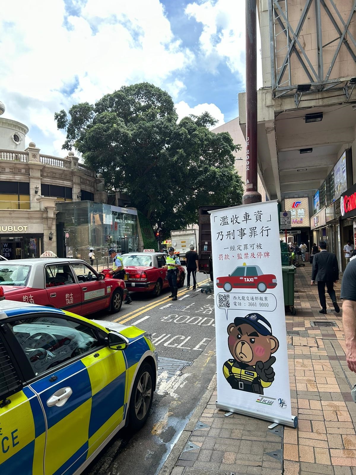 警方表示,因應(yīng)十一國慶黃金周長假期,西九龍總區(qū)交通部執(zhí)行及管制組人員由9月4日起,在尖沙咀區(qū)內(nèi)的遊客乘車熱點加強(qiáng)打擊涉及公共服務(wù)車輛的違規(guī)行為,包括的士司機(jī)在限制區(qū)內(nèi)及非的士站位置兜搭乘客等行為。