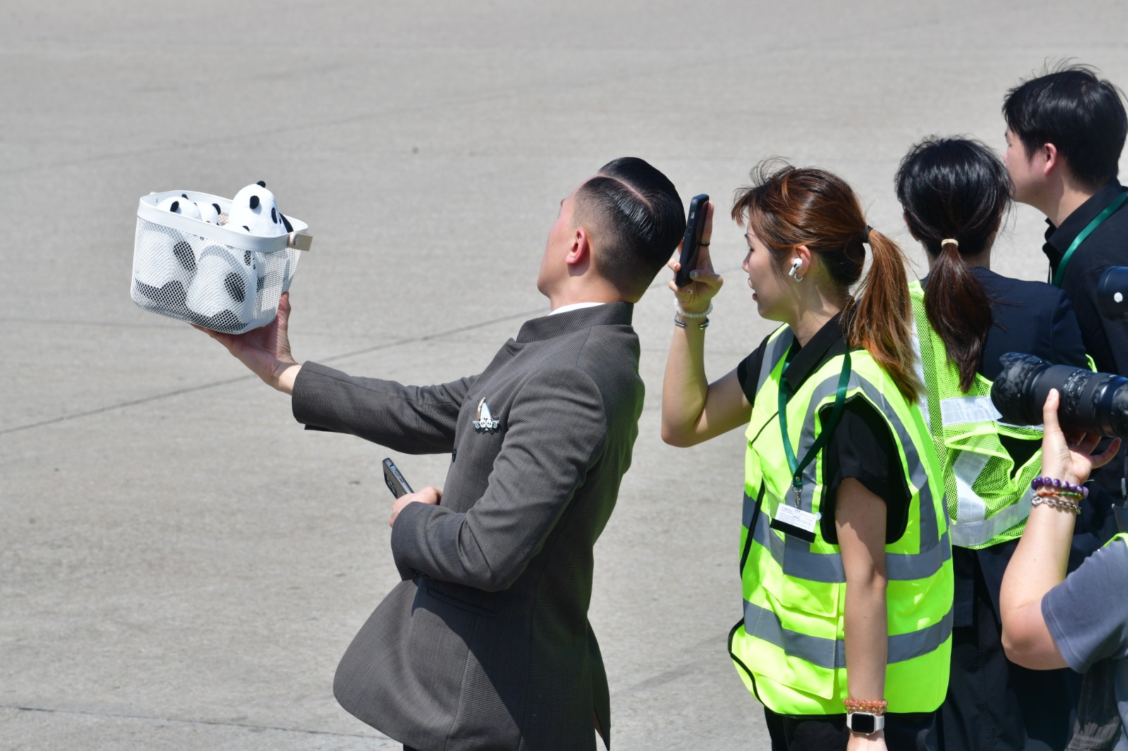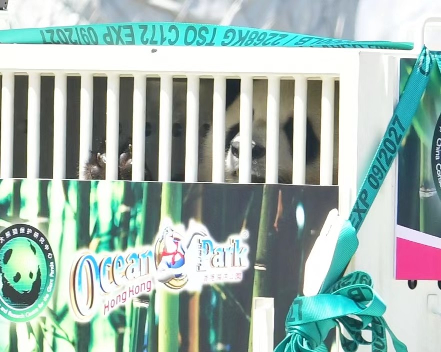 「安安」和「可可」抵達(dá)香港國際機(jī)場。圖:中國大熊貓保護(hù)研究中心
