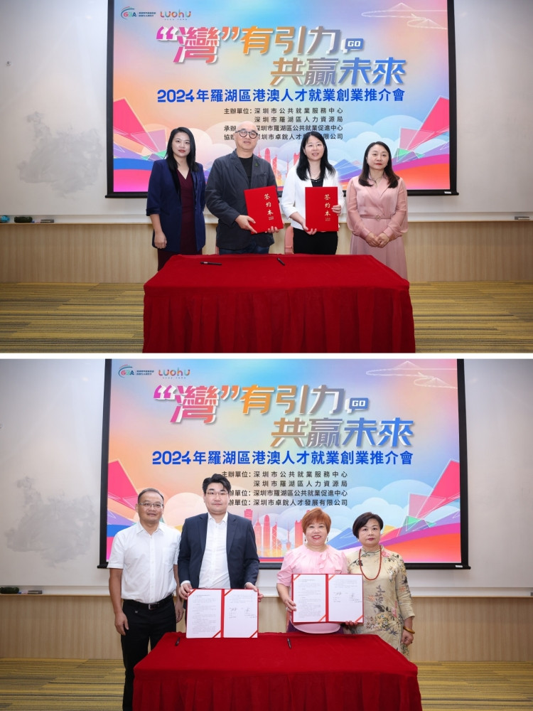 活動現(xiàn)場,深圳市卓銳人才發(fā)展有限公司與大灣區(qū)港澳人才協(xié)會、深圳市嘉鄰邁思企業(yè)服務(wù)有限公司與香港全港商會分別簽訂了合作框架協(xié)議。進(jìn)一步深化深港兩地人才交流,推動羅湖與港澳人才鏈的深度融合發(fā)展。