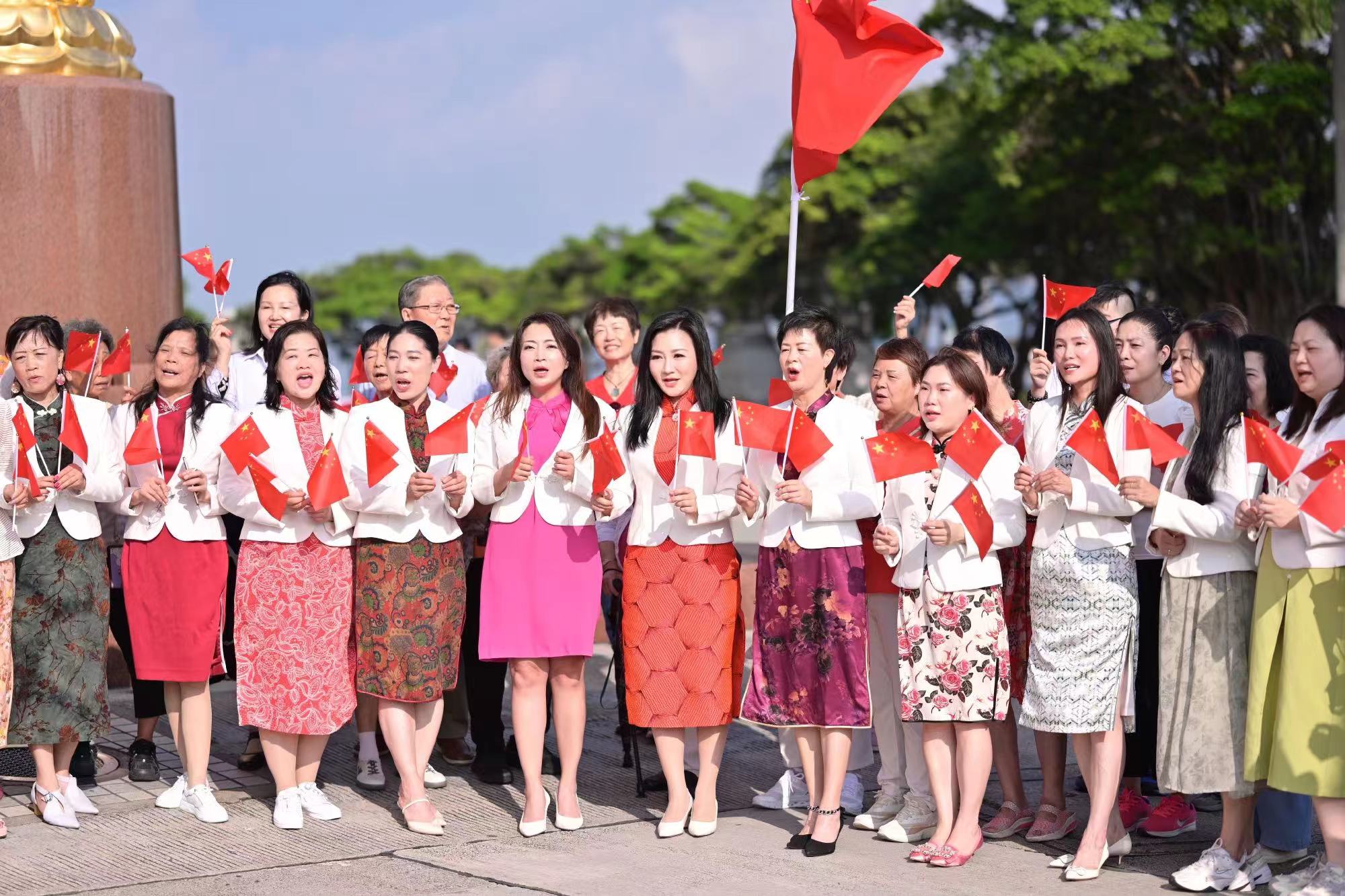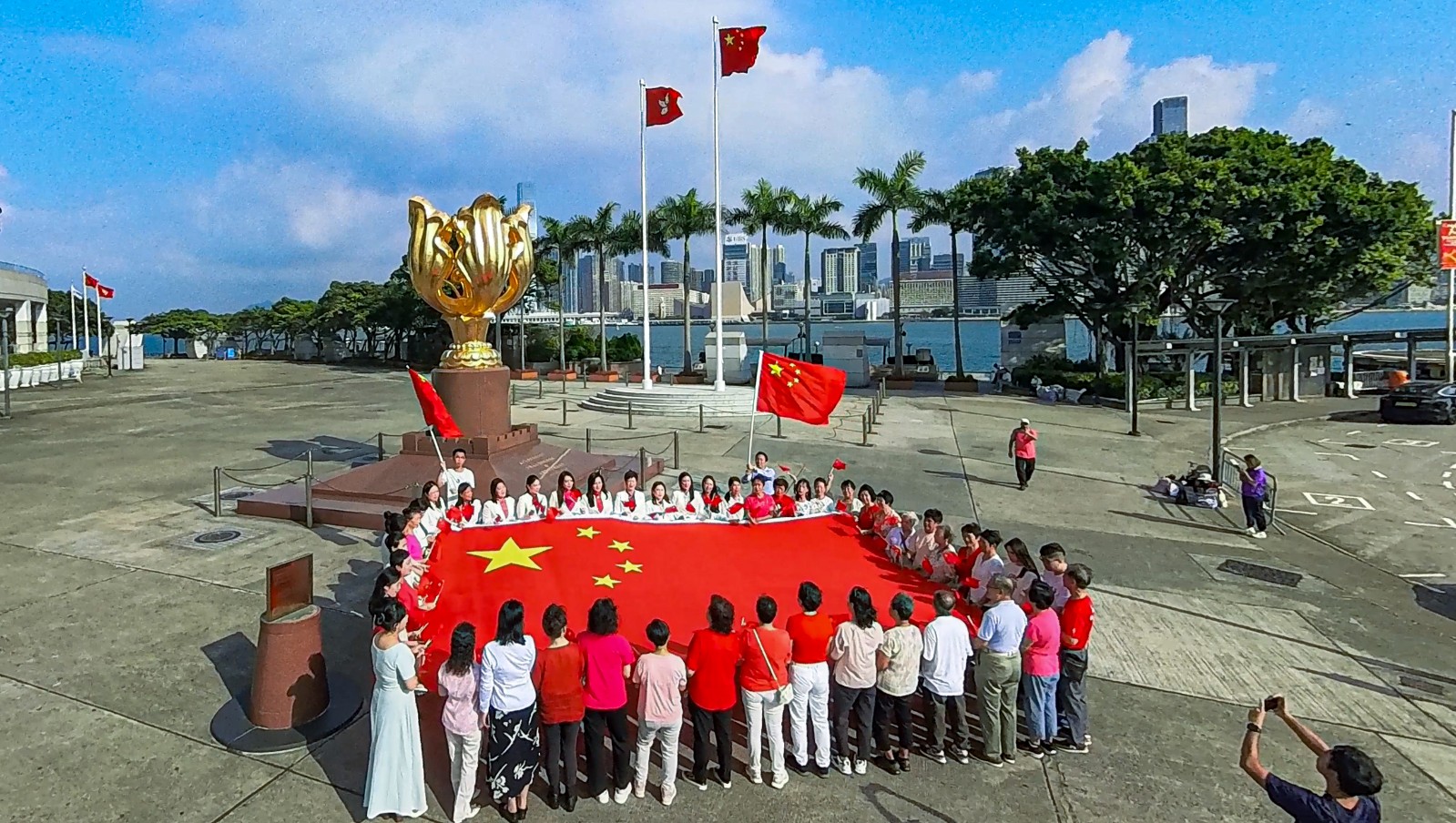 為慶祝中華人民共和國成立75周年,香港島婦女聯(lián)會(huì)與中西區(qū)民政事務(wù)處、香港島各界聯(lián)合會(huì)婦女事務(wù)委員會(huì)聯(lián)合啓動(dòng)「龍的傳人- 國旗快閃耀香江」系列活動(dòng)。主辦方邀數(shù)百名市民,穿著旗袍、華服或配合國慶元素的服裝在山頂廣場、金紫荊廣場、中山紀(jì)念公園等不同港島地標(biāo)景點(diǎn),拍照留念,高唱愛國歌曲,並揮動(dòng)大型國旗橫幅,以快閃方式,同歡唱、共慶賀,表達(dá)對(duì)國家的認(rèn)同、中華兒女的家國情懷和對(duì)祖國的祝福。