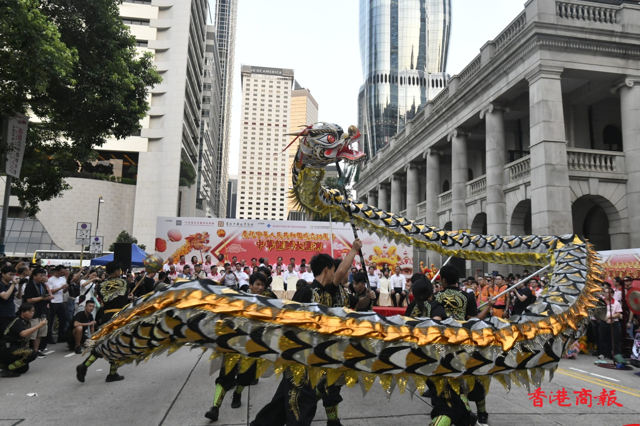 為慶祝中華人民共和國(guó)成立75周年,中西區(qū)各界慶典委員會(huì)攜手地區(qū)主要社團(tuán)和商會(huì),今日(29日)在中環(huán)遮打道舉辦「國(guó)慶中華龍獅大匯演」,來(lái)自香港和廣東等地的龍獅隊(duì)組成8條彩龍和75頭醒獅。律政司副司長(zhǎng)張國(guó)鈞致辭時(shí)稱,新中國(guó)成立75周年,在各領(lǐng)域取得輝煌成就,匯演不單是對(duì)國(guó)家成就的祝賀,更是對(duì)未來(lái)更好生活的祝福。
