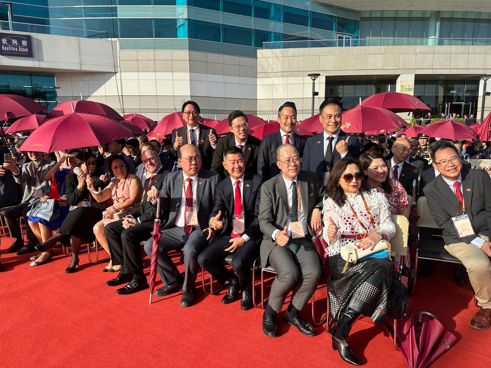 出席升旗儀式的嘉賓觀禮。記者 木子攝