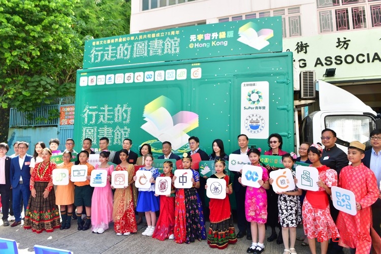 香港文化藝術(shù)界慶祝中華人民共和國(guó)成立75周年系列活動(dòng)之聯(lián)合出版集團(tuán)「行走的圖書館」元宇宙升級(jí)版公益閱讀活動(dòng)啟動(dòng)儀式今日(3日)在油蔴地街坊會(huì)學(xué)校舉行。載滿優(yōu)質(zhì)圖書、電子書、AR及VR設(shè)備、元宇宙體驗(yàn)項(xiàng)目等的流動(dòng)圖書車由今日至9日將駛進(jìn)香港10所中小學(xué)校,為基層家庭和少數(shù)族裔學(xué)校的師生送贈(zèng)優(yōu)質(zhì)圖書及精美文具,分享閱讀樂趣。