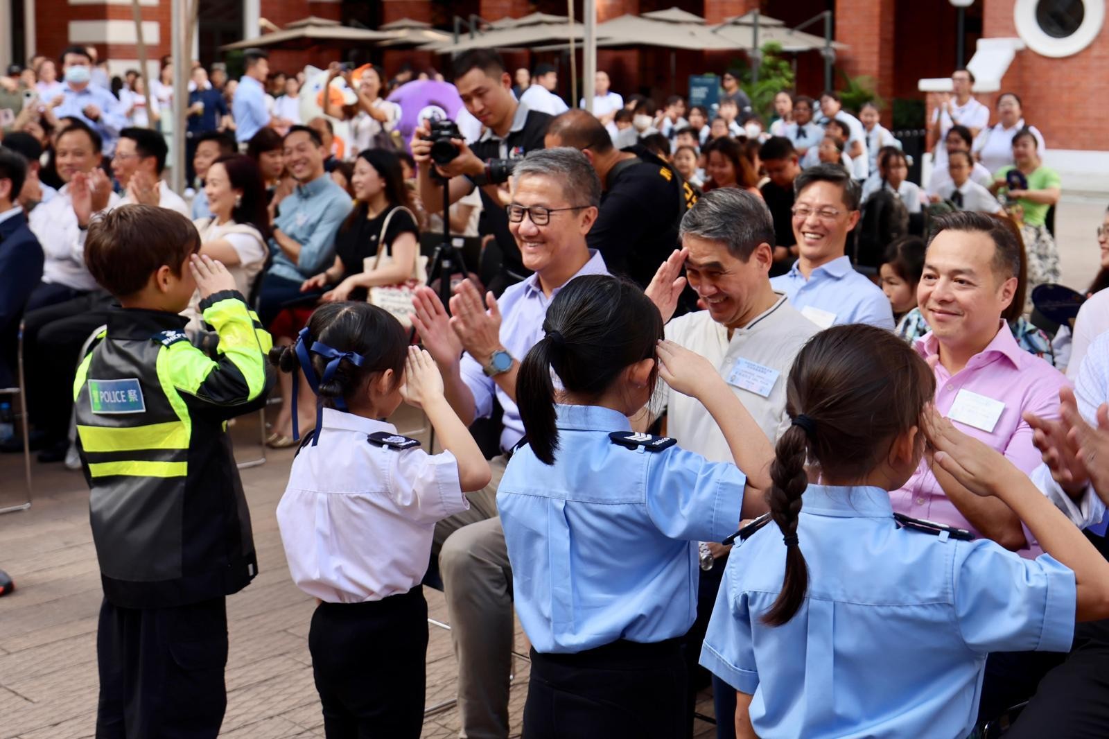 蕭澤頤致辭時表示,香港警隊(duì)在180年來經(jīng)歷不同挑戰(zhàn),警隊(duì)上下均無畏無懼,肩負(fù)起保護(hù)市民生命同財(cái)產(chǎn)安全的使命,堅(jiān)守崗位。隨著國安法的實(shí)施,警隊(duì)更加肩負(fù)維護(hù)國家安全的責(zé)任,全力維護(hù)法紀(jì),守護(hù)香港。蕭澤頤亦強(qiáng)調(diào)市民必須提高警覺,勿墮騙案,呼籲市民下載「防騙伺伏App」。