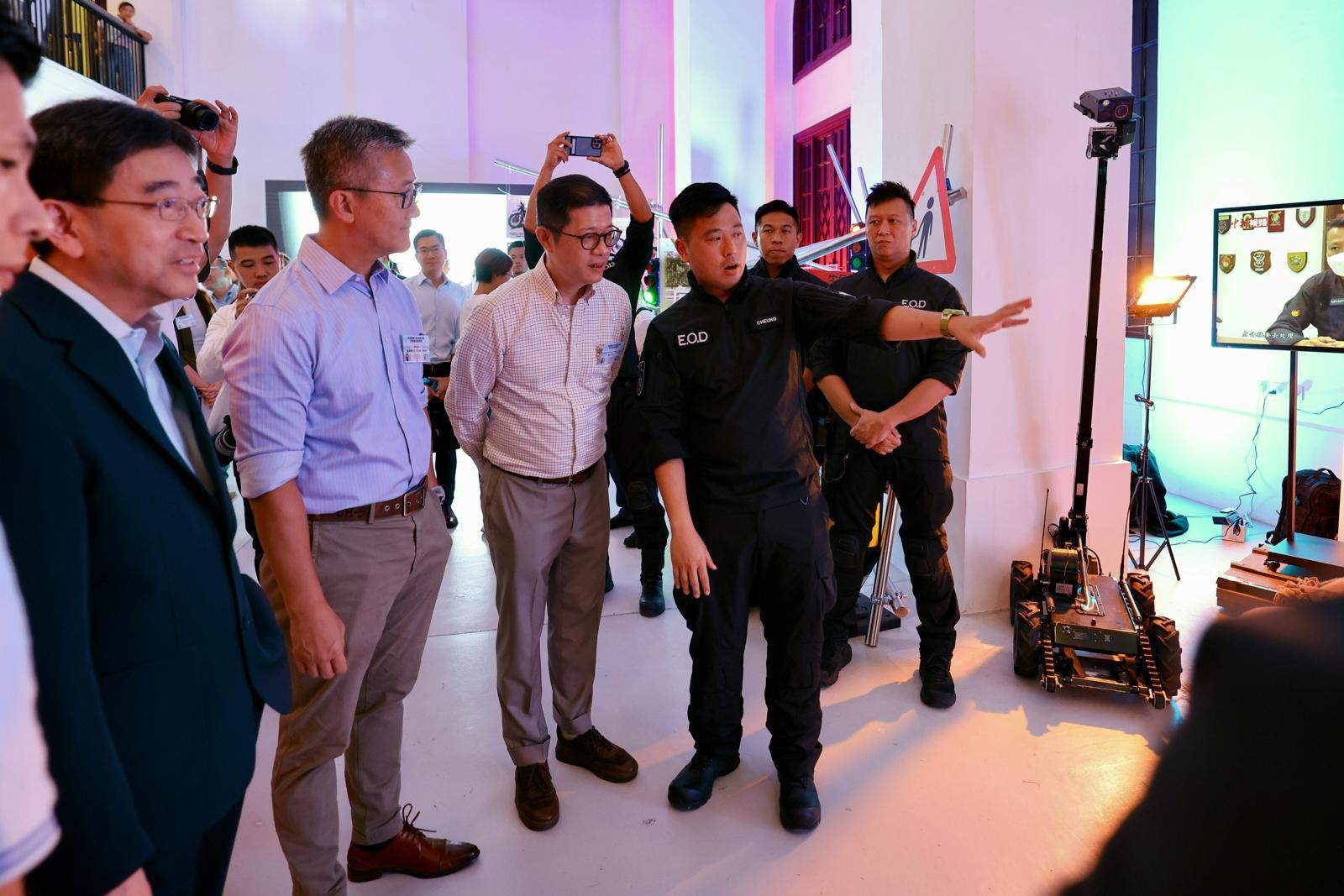 展覽於今日(6日)揭幕,當(dāng)中主禮嘉賓包括警務(wù)處處長蕭澤頤、行政會議成員高永文、前警務(wù)處處長鄧竟成、香港賽馬會對外事務(wù)部主管鄭琪、警務(wù)處副處長(行動)周一鳴、行動處處長陳東、港島總區(qū)指揮官郭嘉銓、港島四區(qū)民政專員。蕭澤頤帶領(lǐng)一眾主禮嘉賓及小學(xué)生,為警隊(duì)吉祥物「熊Sir」雕塑上色,以宣揚(yáng)道路安全信息,為展覽揭開序幕。