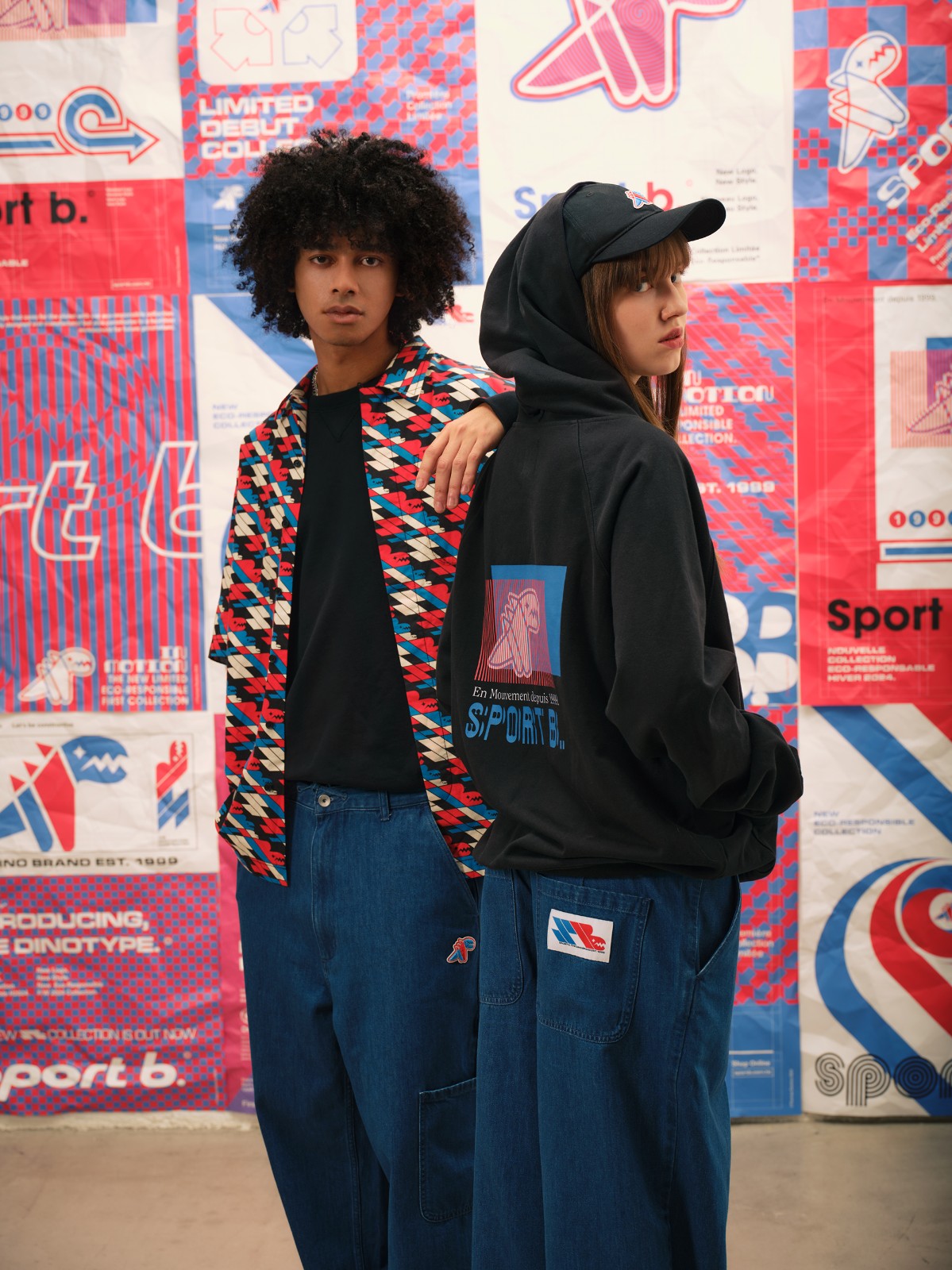 系列以幾何圖案重塑Dino標(biāo)誌,以中性剪裁設(shè)計(jì)兼容多種穿搭方式配合搶眼的色彩,型格的同時(shí)展現(xiàn)街頭玩味風(fēng)格。系列的男女通用拉鏈外套以撞色拼接為設(shè)計(jì),大面積的紫色為外套增添個(gè)性與質(zhì)感,底部加上該系列標(biāo)籤,低調(diào)又不失細(xì)節(jié)感。另一件恤衫以法國(guó)國(guó)旗顏色作為主色調(diào),印上以抽象幾何圖案重塑的Dino圖案,剪裁寬鬆休閒,可當(dāng)上衣或外套穿著。男裝連帽衛(wèi)衣背面印上Dino圖案,重疊堆砌系列的色調(diào),為設(shè)計(jì)注入新意,帽子內(nèi)襯選用紫色作對(duì)比色,顯露設(shè)計(jì)心思。