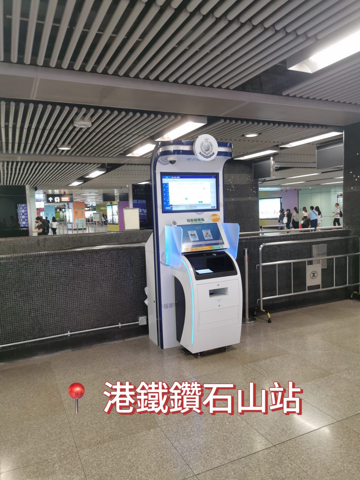 警方自2023年9月於港鐵金鐘站及港珠澳大橋香港口岸旅檢大樓設(shè)置「自助服務(wù)機(jī)」,至今已有超過1600名市民和旅客使用。有見成效理想,「自助服務(wù)機(jī)」已伸延至港鐵鑽石山和羅湖站、深圳灣及落馬洲支線口岸。