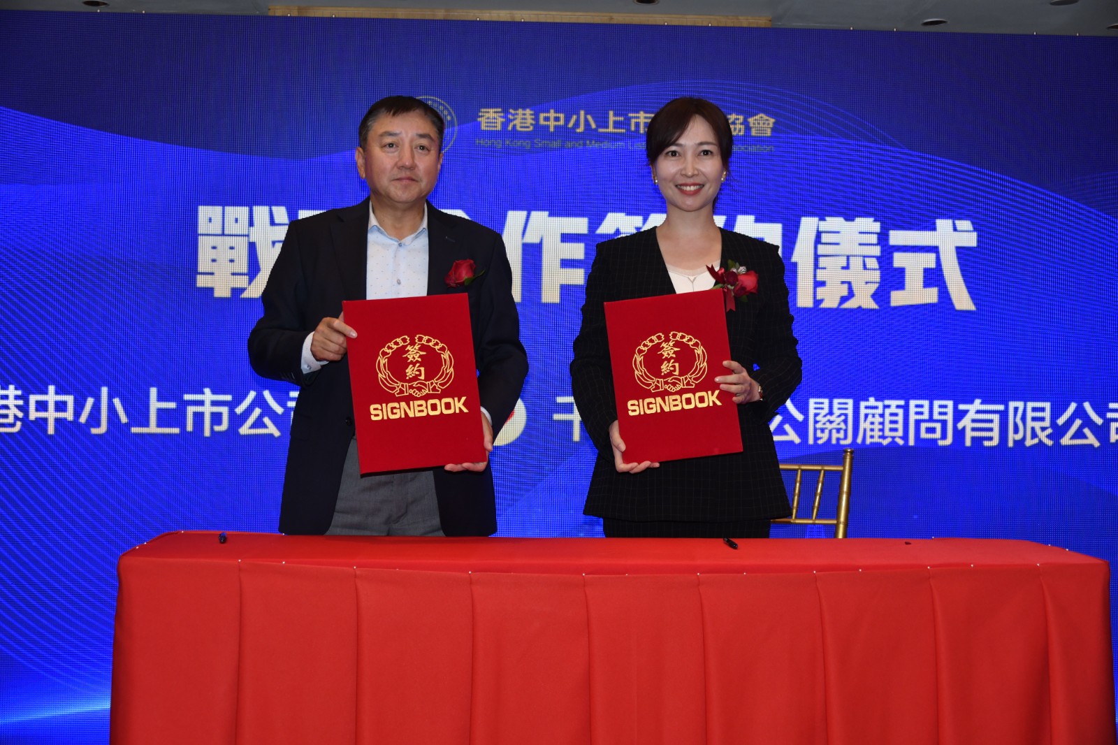 香港中小上市公司協(xié)會與各企業(yè)舉行戰(zhàn)略合作協(xié)議簽約儀式。(蔡啟文 攝)