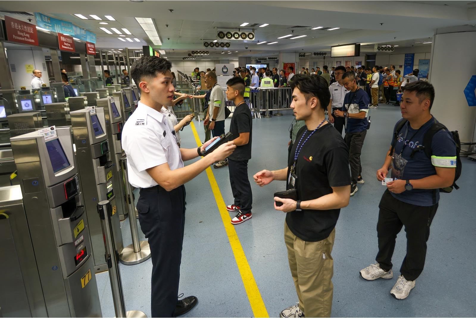 入境處今日(9日)與警務(wù)處、海關(guān)、機(jī)電署、運(yùn)輸署、港鐵及中電,在羅湖管制站進(jìn)行聯(lián)合演練,內(nèi)地相關(guān)部門(mén)予以支持及配合。演練模擬羅湖管制站港方口岸發(fā)生供電及系統(tǒng)網(wǎng)絡(luò)事故,各單位隨即採(cǎi)取應(yīng)變措施,以確保管制站運(yùn)作安全有序。