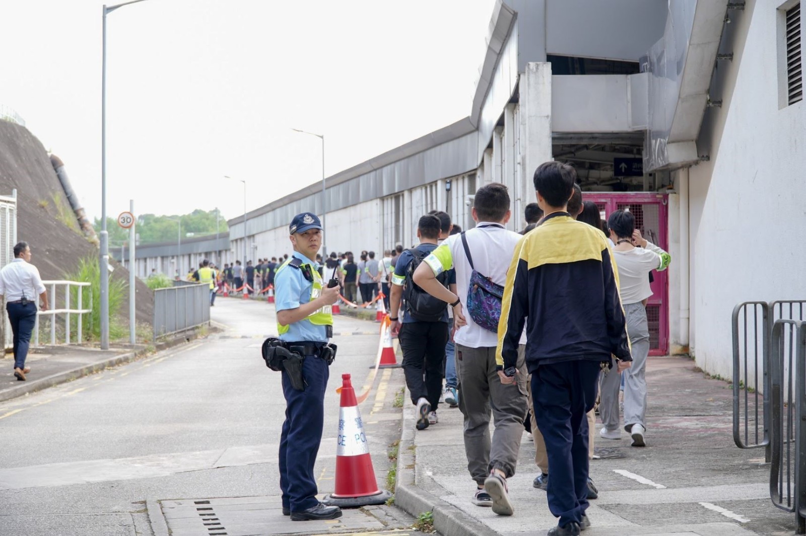 在模擬事故發(fā)生後警方採(cǎi)取人群管理的情況。政府新聞處