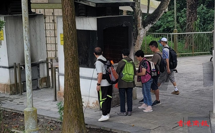 今早(11日)8時(shí)許,開(kāi)始有市民前往粉嶺和合石墳場(chǎng)拜祭,孝子賢孫攜帶祭品,包括燒豬、果品和鮮花,到埗後因警方已實(shí)施封路,車輛不可通行,市民需徒步前往先人龕位拜祭,幸今早天陰空氣清爽,上水區(qū)氣溫26.3度。民安隊(duì)派員在龕位內(nèi)協(xié)助維持秩序,市民拜祭後在化寶區(qū)排隊(duì)燃燒冥鏹,秩序良好。