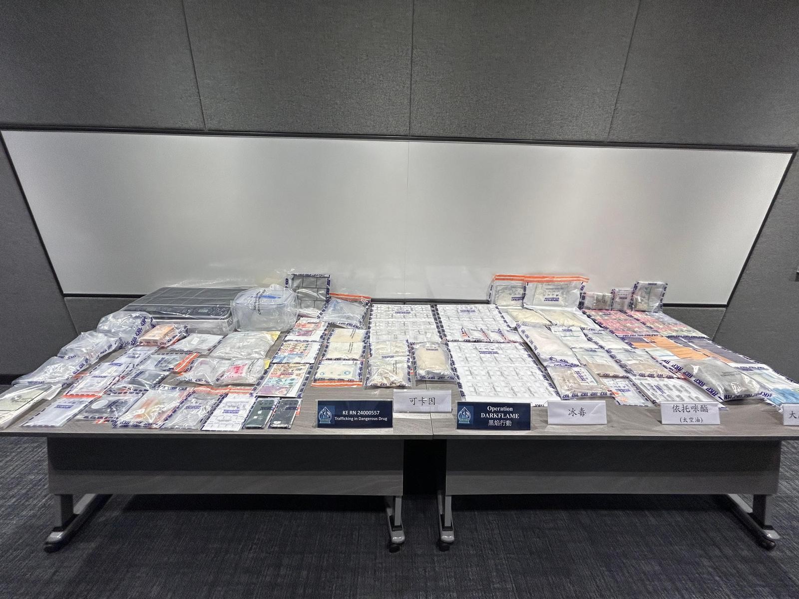 行動中搜出大批毒品,包括3.9公斤可卡因、290克冰毒、70多粒搖頭丸、393克大麻花和數(shù)10支含THC的香煙,同時檢獲1.2公斤俗稱「太空油」的依托咪酯,總值320萬元。
