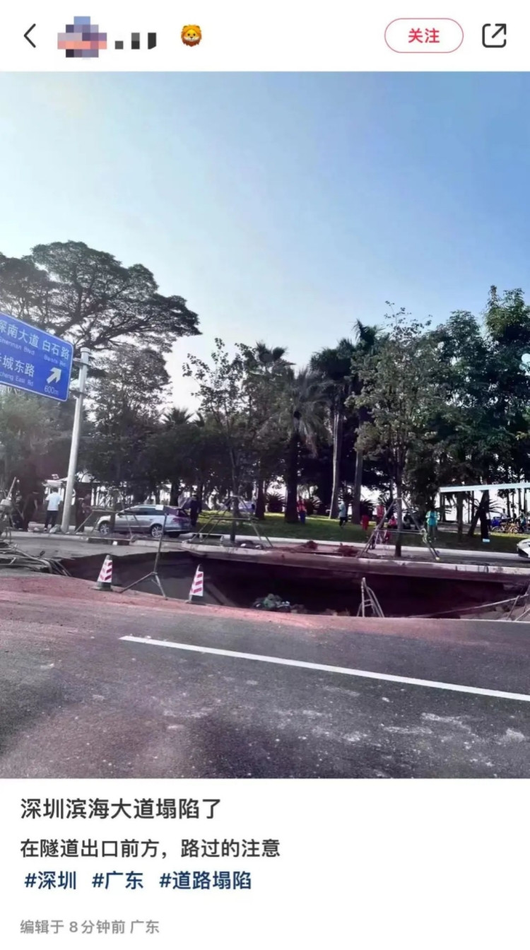 10月12日早高峰,網(wǎng)友報(bào)料稱,深圳濱海大道一路段塌陷導(dǎo)致車(chē)輛堵塞。