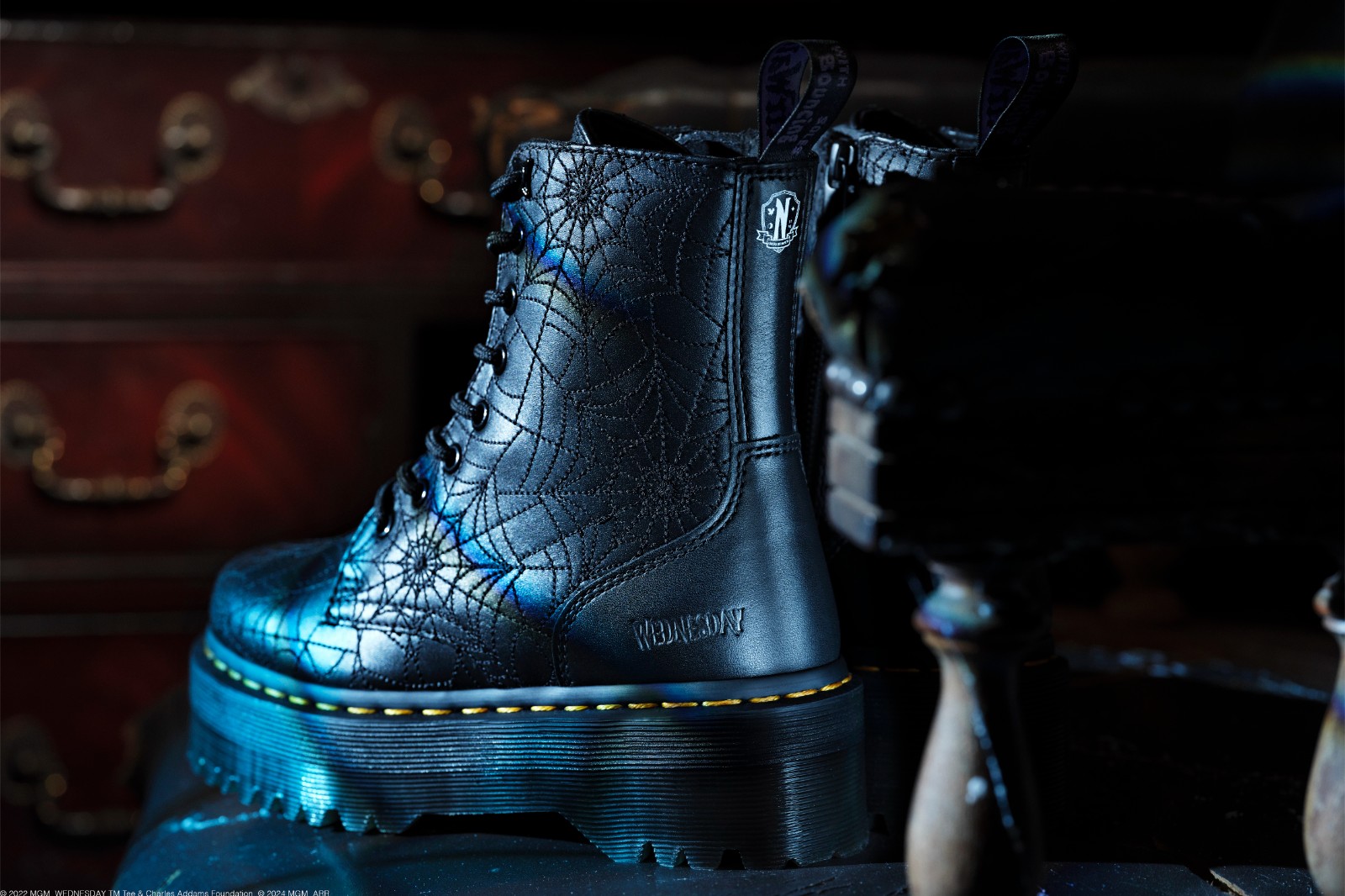 DR. MARTENS推出全新聯(lián)乘系列Wednesday,系列靈感來自於Netflix 熱門電視劇《星期三》的暗黑氛圍和圖標及主角Wednesday Addams,涵蓋靴、鞋、高跟鞋。以劇中標誌的午夜黑色調呈現(xiàn),並致敬劇內的宿舍彩色玻璃窗。如Jadon靴子採用光滑、柔軟、觸感柔和的Nappa Lux皮革製成,刺繡裝飾啟發(fā)自彩色玻璃窗,鞋帶裝飾有可拆卸的彩色玻璃窗飾品,靴內襯為紫色,印有Wednesday手持雨傘的圖案,內斂低調,風格獨特。