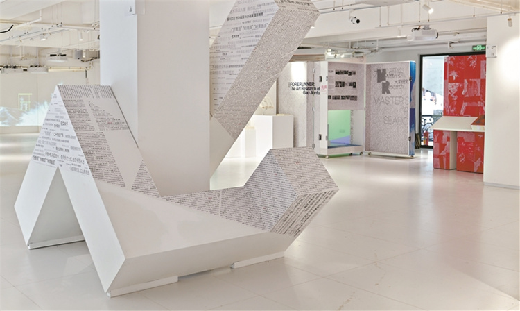 三層文獻展臺巧妙地把原有護欄改裝成展臺,圓弧形投影活化了展陳空間。集合作品圖、文本資料、影像材料的研究成果讓觀眾能夠進行延伸閱讀。