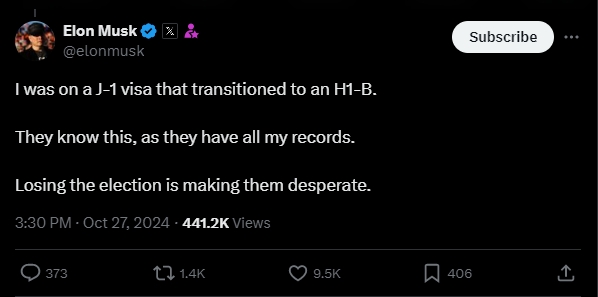 被拜登攻擊曾在美國「非法工作」 馬斯克發(fā)文回應(yīng)