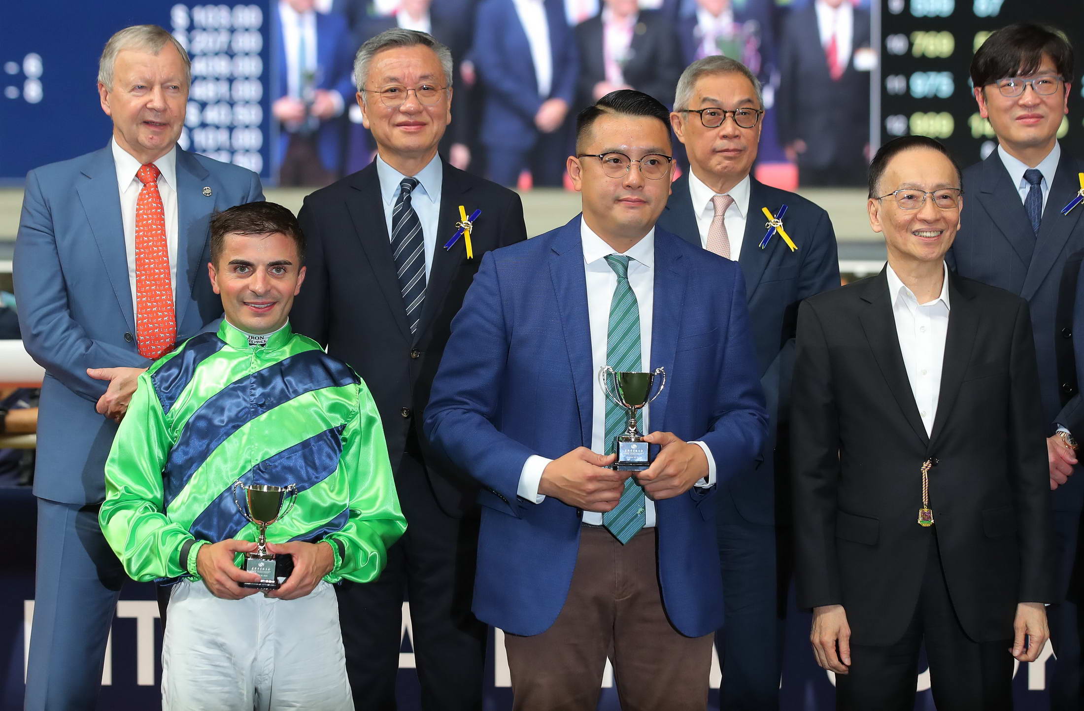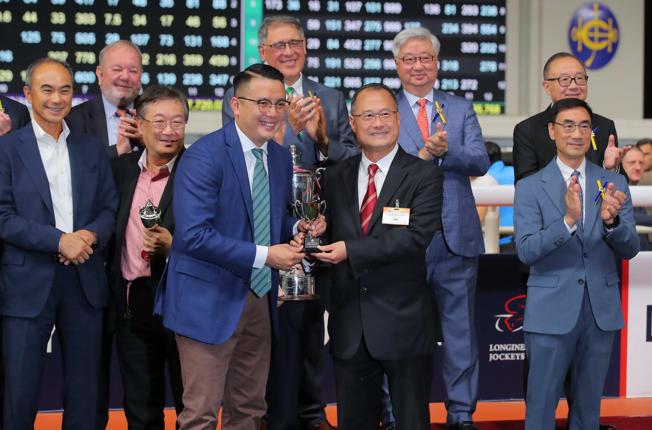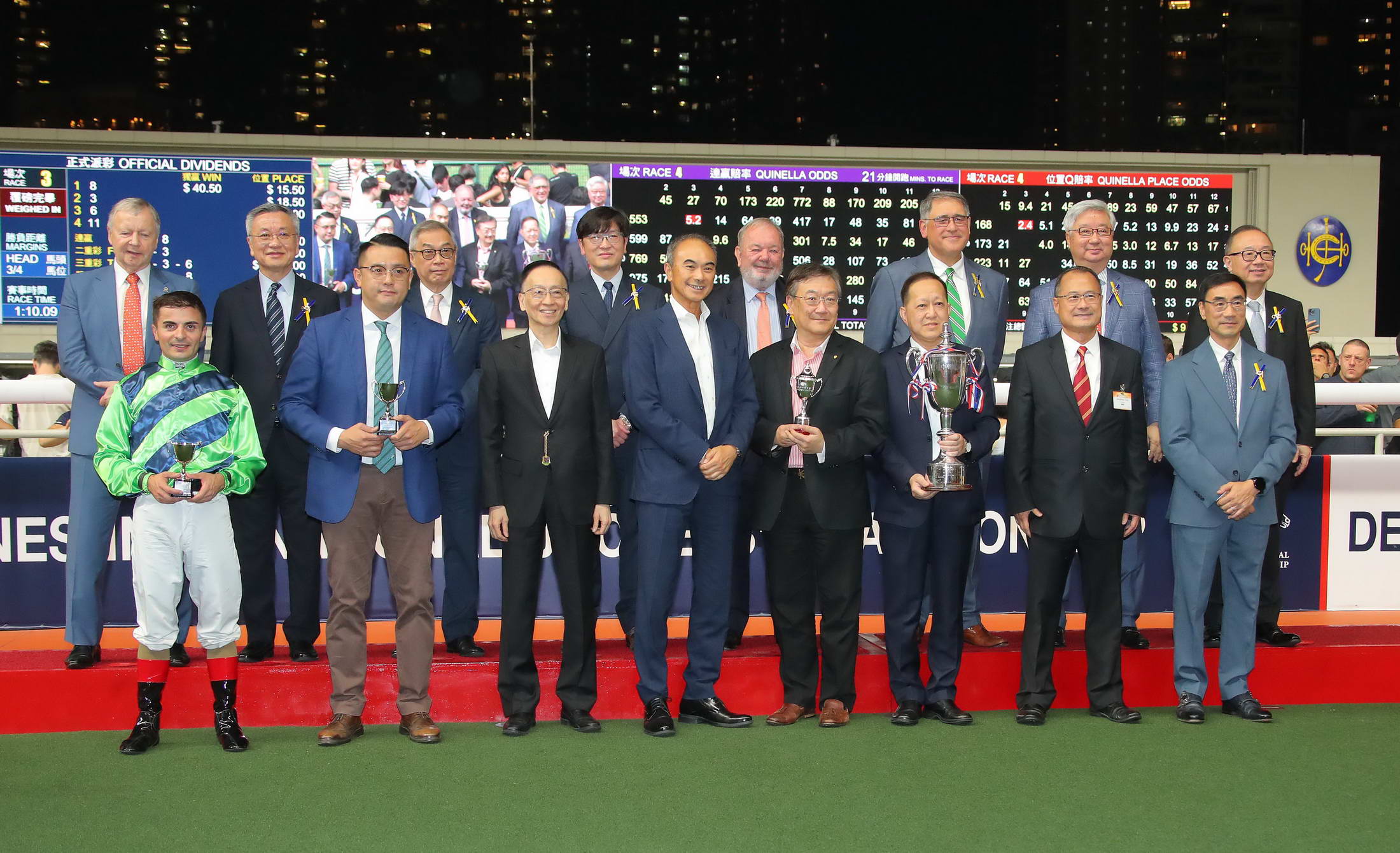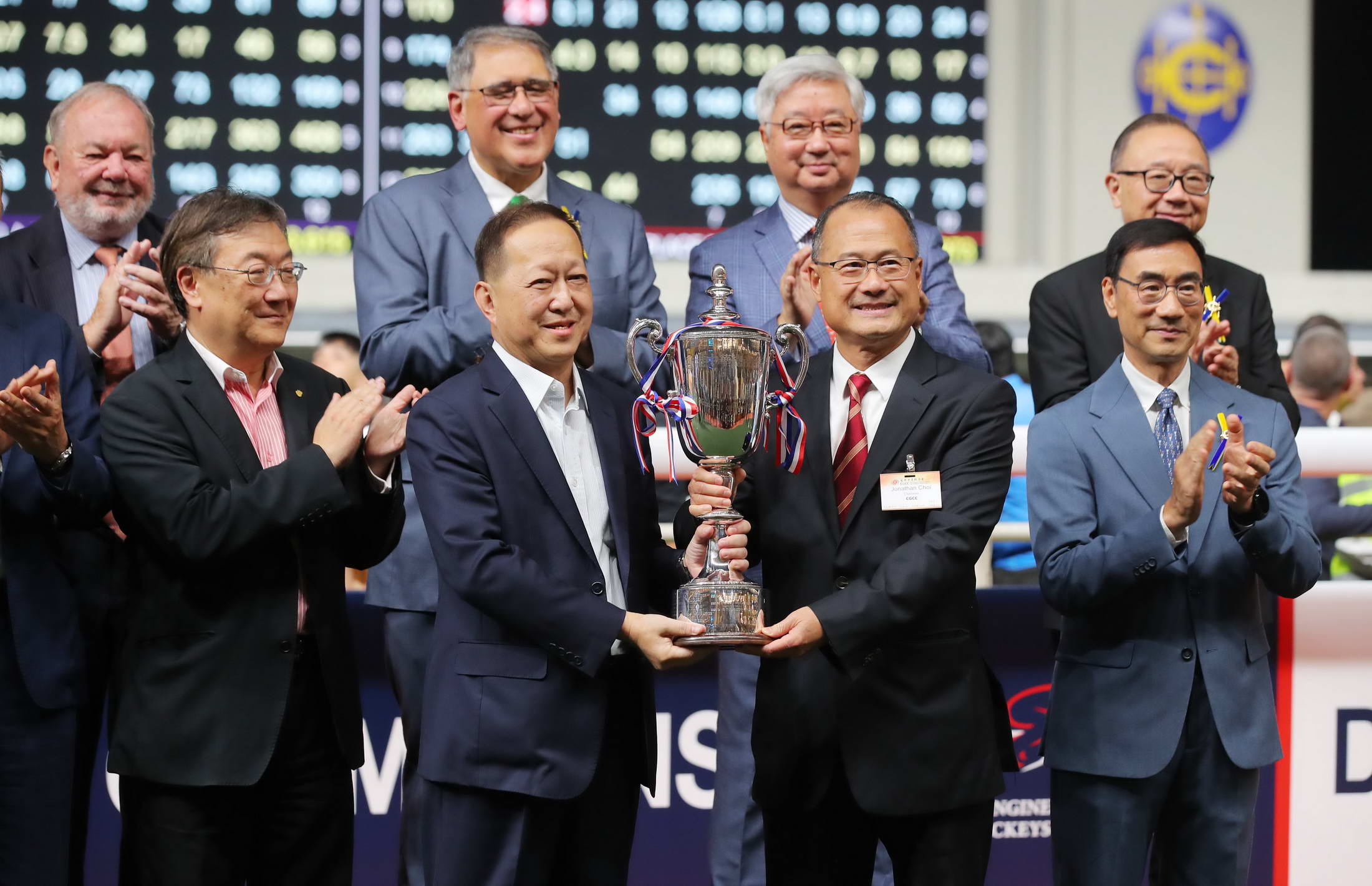 香港中華總商會會長蔡冠深賽後出席頒獎儀式,將獎盃頒發(fā)給「添喜運」的馬主華師團體,並將小型獎盃頒發(fā)給練馬師伍鵬志、騎師艾兆禮。