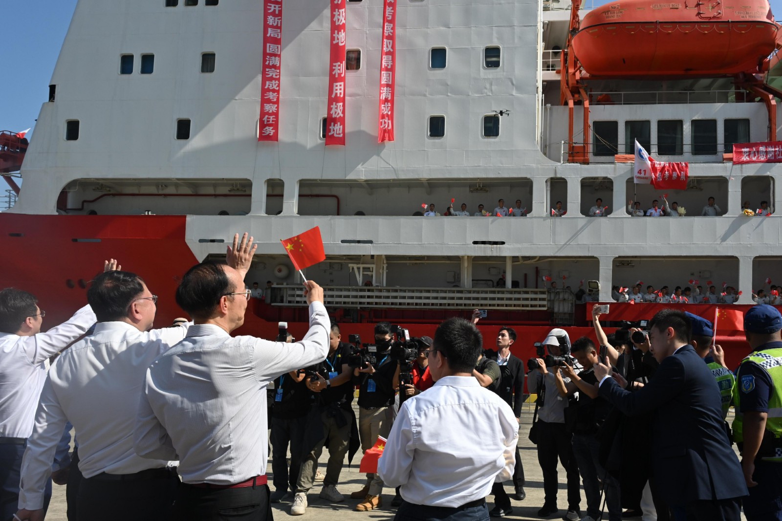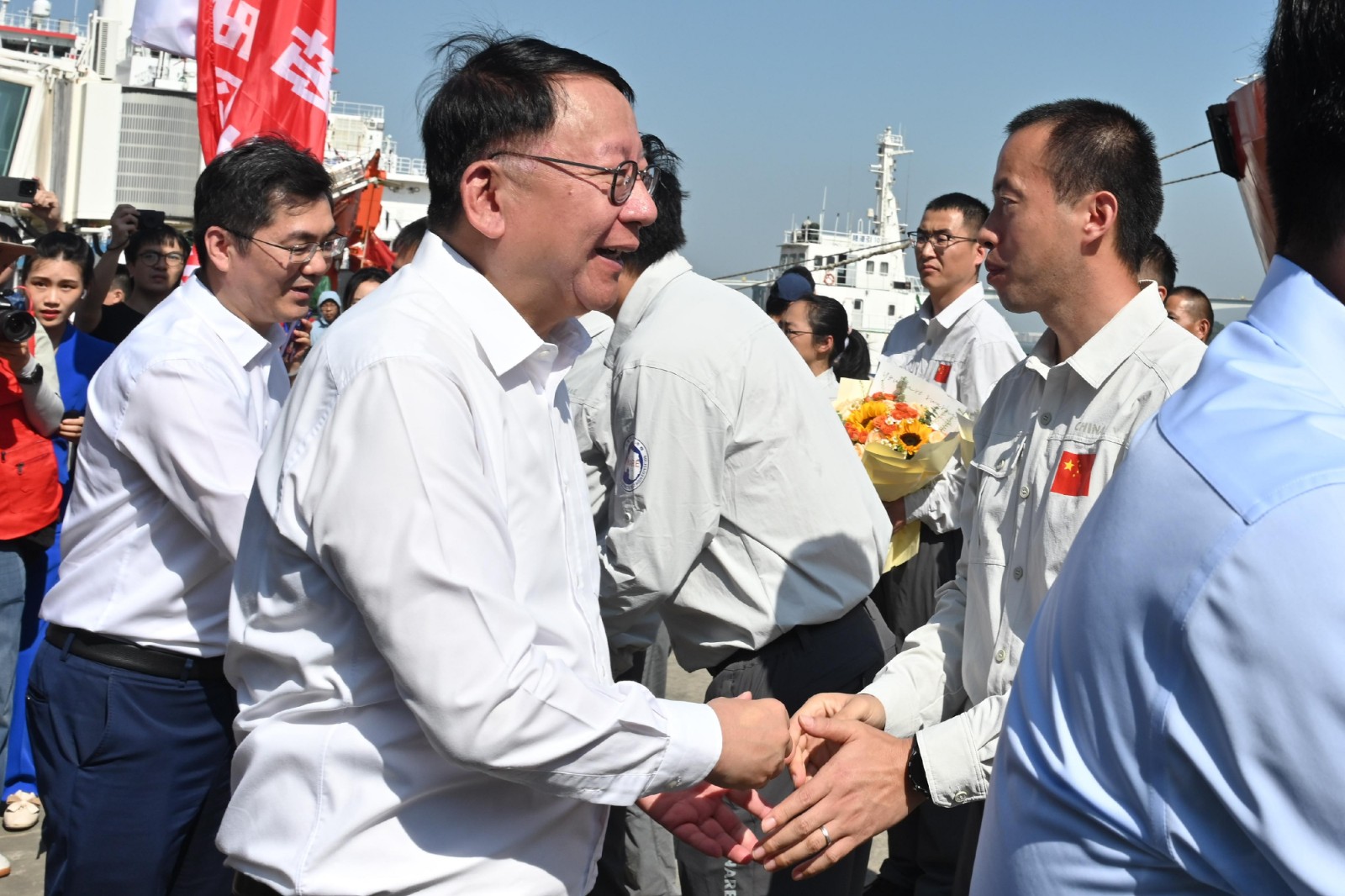 政務(wù)司司長陳國基今日(11月1日)早上在廣州南沙國際郵輪母港,出席中國第41次南極考察隊啓航活動。這次出征南極的國家考察隊乘坐破冰船「雪龍」號和「雪龍2」號前往極地??疾礻牣?dāng)中有6名成員是從香港選拔的科學(xué)家,是首次有香港科學(xué)家獲選加入國家南極考察隊,參與極地科研考察任務(wù)。