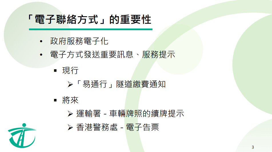 從未提供電子聯(lián)絡(luò)方式的駕駛執(zhí)照持有人亦歡迎透過「香港政府一站通」的網(wǎng)上服務(wù)或遞交TD559表格提供和核實電子聯(lián)絡(luò)方式。