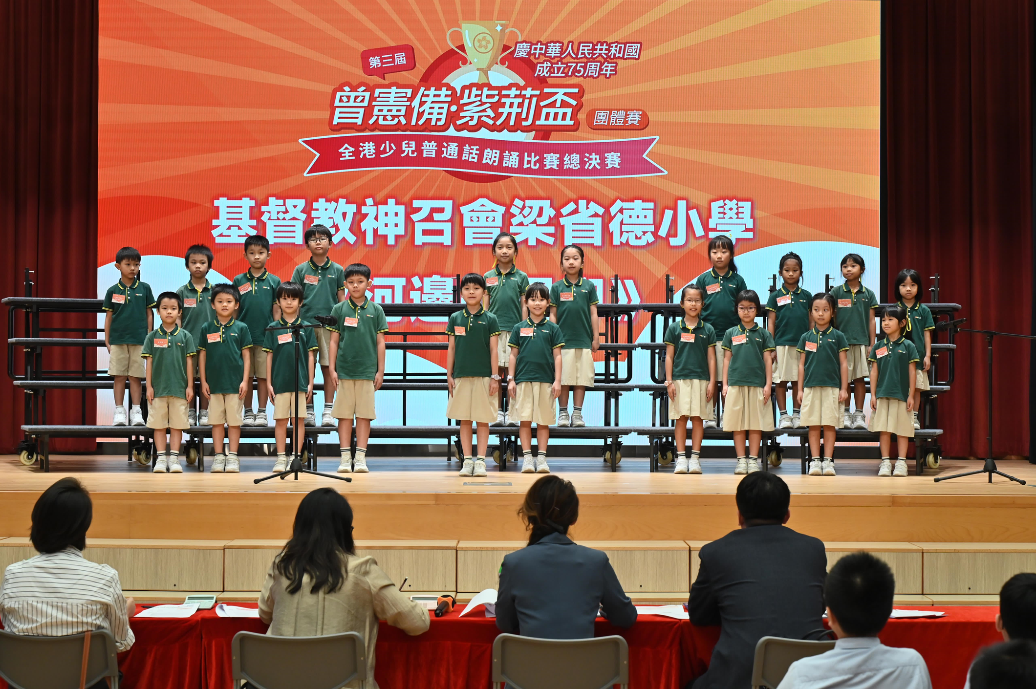 第三屆「曾憲備·紫荊盃」全港少兒普通話朗誦比賽頒獎(jiǎng)典禮今日(2日)舉行,今年團(tuán)體賽環(huán)節(jié)首次登場(chǎng),通過(guò)普通話的團(tuán)體朗誦比賽,培養(yǎng)團(tuán)隊(duì)合作精神,推動(dòng)愛(ài)國(guó)主義教育,從而提高學(xué)生對(duì)華夏文化的認(rèn)識(shí),加深對(duì)祖國(guó)的歸屬感和傳承優(yōu)秀傳統(tǒng)文化。曾憲備慈善基金董事曾慶輝,新界校長(zhǎng)會(huì)會(huì)長(zhǎng)朱景玄,立法會(huì)議員郭玲麗,中文路董事長(zhǎng)郭信麟,西貢區(qū)區(qū)議員兼香港普通話專業(yè)協(xié)會(huì)會(huì)長(zhǎng)靳彤彤,荃灣區(qū)議員劉松剛擔(dān)任典禮主禮嘉賓。