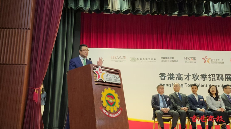 尚海龍則說,今天很高興見到有多位嘉賓應(yīng)邀出席,濟濟一堂,臺上包括來自商界的林健鋒、馬介欽、嚴(yán)剛。除了商界代表之外,還有兩位來自勞工界的代表,包括吳秋北、林振昇。尚海龍相信今次的主禮嘉賓都非常關(guān)注人才到港,希望他們和家庭能夠融入香港的生活,他又說今次是協(xié)會第5次舉辦招聘會,形容協(xié)會是「急大家所急」,因為今年12月是第一批B、C類高才續(xù)簽的日期,故期望盡快辦好這場招聘會。(記者/攝影:葉家亨)