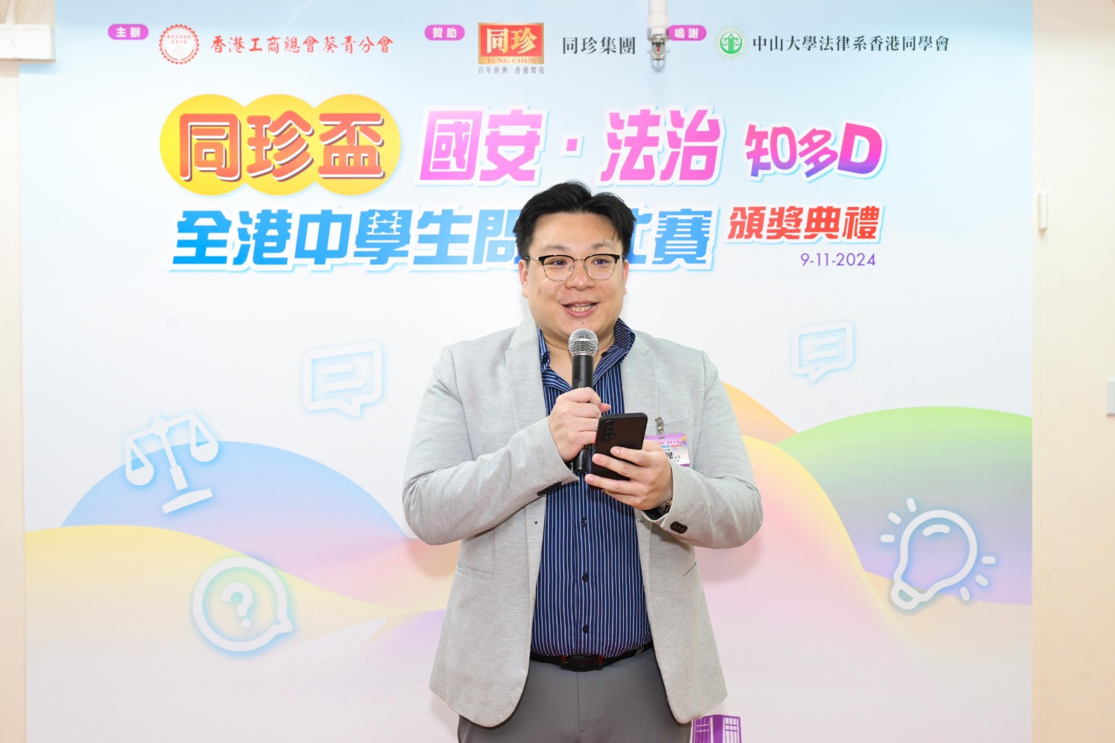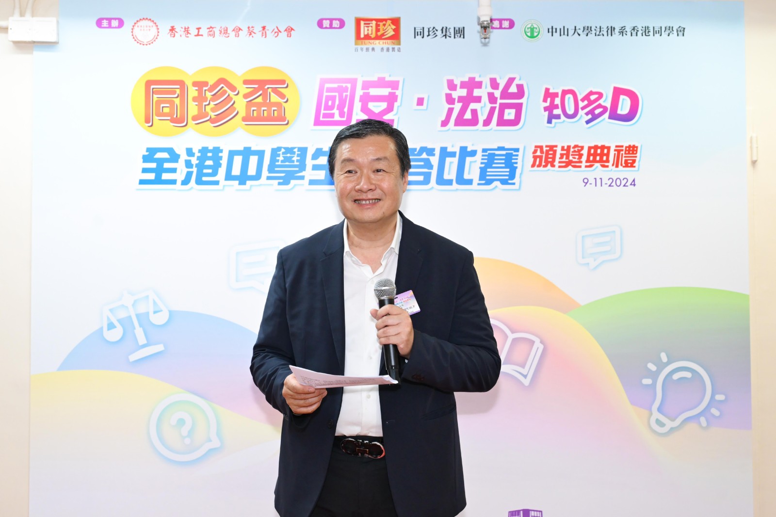 香港工商總會(huì)葵青分會(huì)主辦,中山大學(xué)法律系香港同學(xué)會(huì)作主持機(jī)構(gòu)舉辦同珍盃「國安?法治知多D」全港中學(xué)生問答比賽?;顒?dòng)旨在推廣法治教育聯(lián)繫社區(qū),透過互動(dòng)有趣的遊戲方式,讓本港中學(xué)生參與,培養(yǎng)年青有為、奉公守法的下一代,成為未來社會(huì)的棟樑。