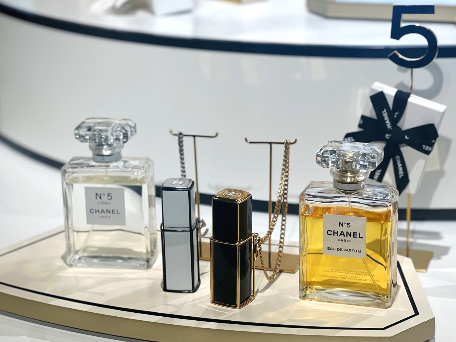 在香水美妝區(qū),能感受品牌經(jīng)典N°5香水,現(xiàn)場有專人為參觀者挑選合適的香水。最新的N°5 Purse Spray是一款可隨身攜帶的香水首飾鏈,管內(nèi)是品牌香水N° 5 L’EAU Eau de Toilette或N°5 Eau de Parfum,首飾鏈上附設(shè)綴有品牌創(chuàng)始人Chanel女士的幸運數(shù)字「5」裝飾。產(chǎn)品可戴於腕間,配合製作場內(nèi)限定的節(jié)日心意卡,是節(jié)日禮物的首選。節(jié)日限定N°5 EAU DE PARFUM的瓶身披上一重「冬雪」,由人手點綴於瓶肩,恍如灑上白色雪霜,為這款繁花香調(diào)添上新意。