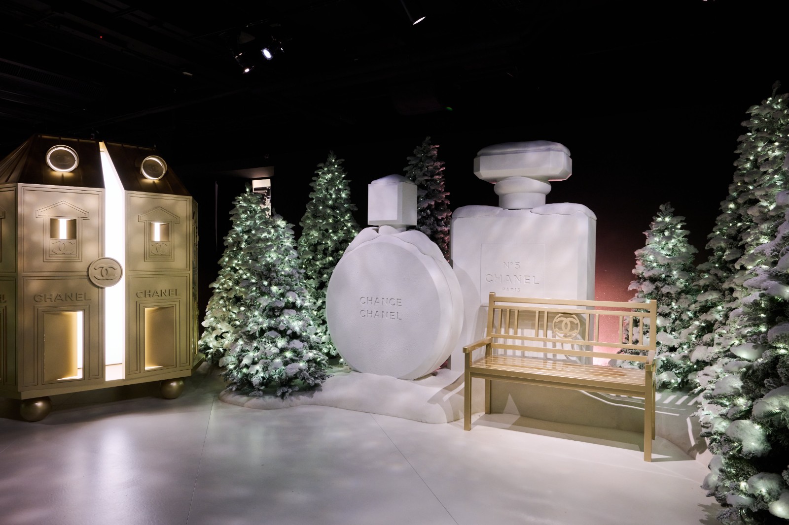 品牌設(shè)置的夢幻世界讓參觀者感受一系列N°5香水及獨家創(chuàng)作、全新節(jié)日限定彩妝、護膚系列外,並設(shè)有三個體驗區(qū)。入場首先走進夢幻感的沉浸式聖誕樹林,場內(nèi)有多個唯美打卡位,聖誕樹上滿布雪霜,配合探索N°5的小遊戲和飄雪濾鏡,彷彿置身於法式童話世界。