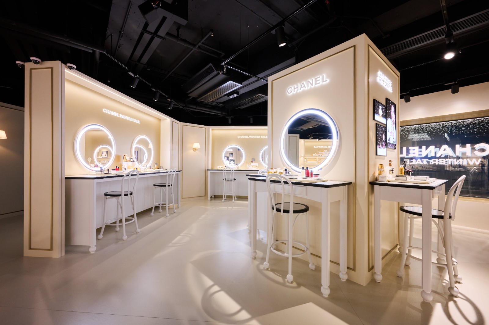參觀者並可一試今年的節(jié)日彩妝系列,彩妝藝術(shù)家Valentina Li以迷人紫紅、活潑粉紅、溫柔珊瑚等紅潤色調(diào)交融,靈感源自壯觀絢麗、色彩幻變的北極光。一系列明亮色調(diào),在寒冷冬夜烘托出暖意,為妝容注入幻妙氣色。如ENCHANTED NIGHT多效四色眼影,從紫粉紅色、耀銀面色、帶藍色虹彩的閃漾紫啡色到珊瑚銅色,可作眼影也可作胭脂,色調(diào)大膽,如同北極光為繁星閃爍的黑暗披上色彩,銀白的雪花冰霜中映照淡淡紫光。配合啡紅色和梅紫色的LE LINER DE CHANEL細緻持久防水眼線液,突出深邃眼眸。DIAMOND DUST浮雕星鑽亮肌光影粉有助增添臉部光澤,恍如陽光照耀下的雪花,令雙頰和眉骨綻放出珍珠光芒。ROUGE ALLURE L’EXTRAIT絕色亮澤唇膏推出四款最新限量色調(diào),以磚紅、紫啡等濃烈唇膏色彩,點亮雙唇。經(jīng)典唇膏筒設(shè)計如同高級珠寶,飾以象徵冬日的雪花浮雕圖案。Valentina Li為ROUGE ALLURE LAQUE極致鏡面水光唇釉帶來兩款新色調(diào),金屬緞光妝效,珠光紫粉紅色調(diào)帶來長效光澤不減的迷人雙唇,深紅色喚起冬天的日落霞光回憶。