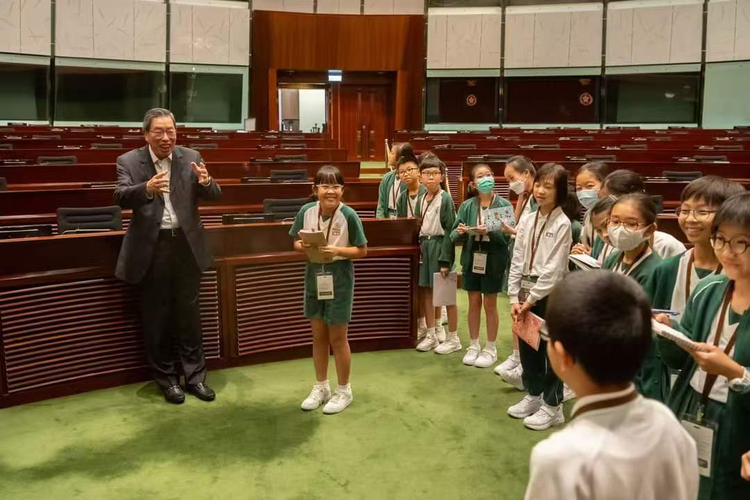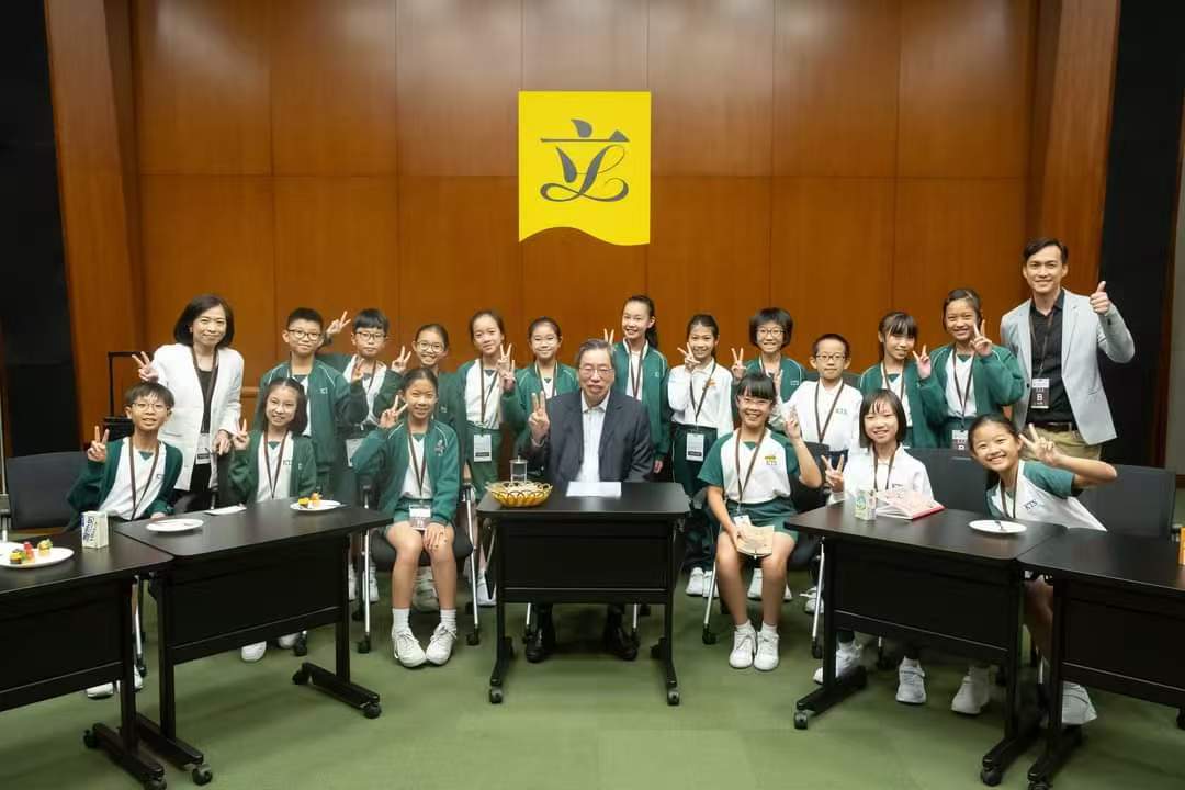 立法會主席梁君彥為2024/25學(xué)年「與立法會議員暢談」計劃揭開序幕,並親自接待17名來自九龍?zhí)翆W(xué)校(小學(xué)部)的小五和小六學(xué)生。圖:梁君彥fb
