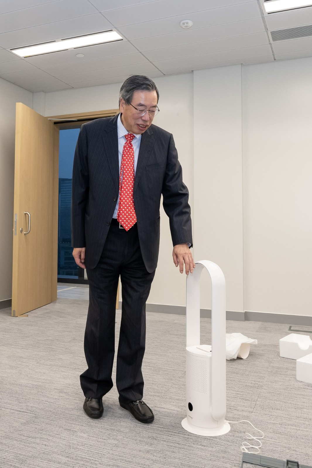 梁君彥和秘書(shū)處秘書(shū)長(zhǎng)下午到部分議員樓層視察新辦公室、茶水間和會(huì)客室。他說(shuō),秘書(shū)處已在議員樓層進(jìn)行大清潔及除甲醛,並添置空氣清新機(jī),致力維持室內(nèi)空氣質(zhì)素良好,讓議員安心入伙。一些議辦已安裝好工作間或牆身櫃,效率很高,大家都期望入伙大吉,盡快投入工作。