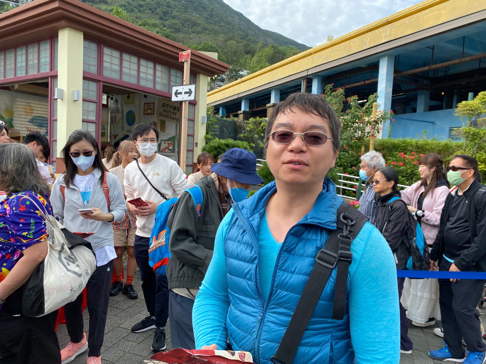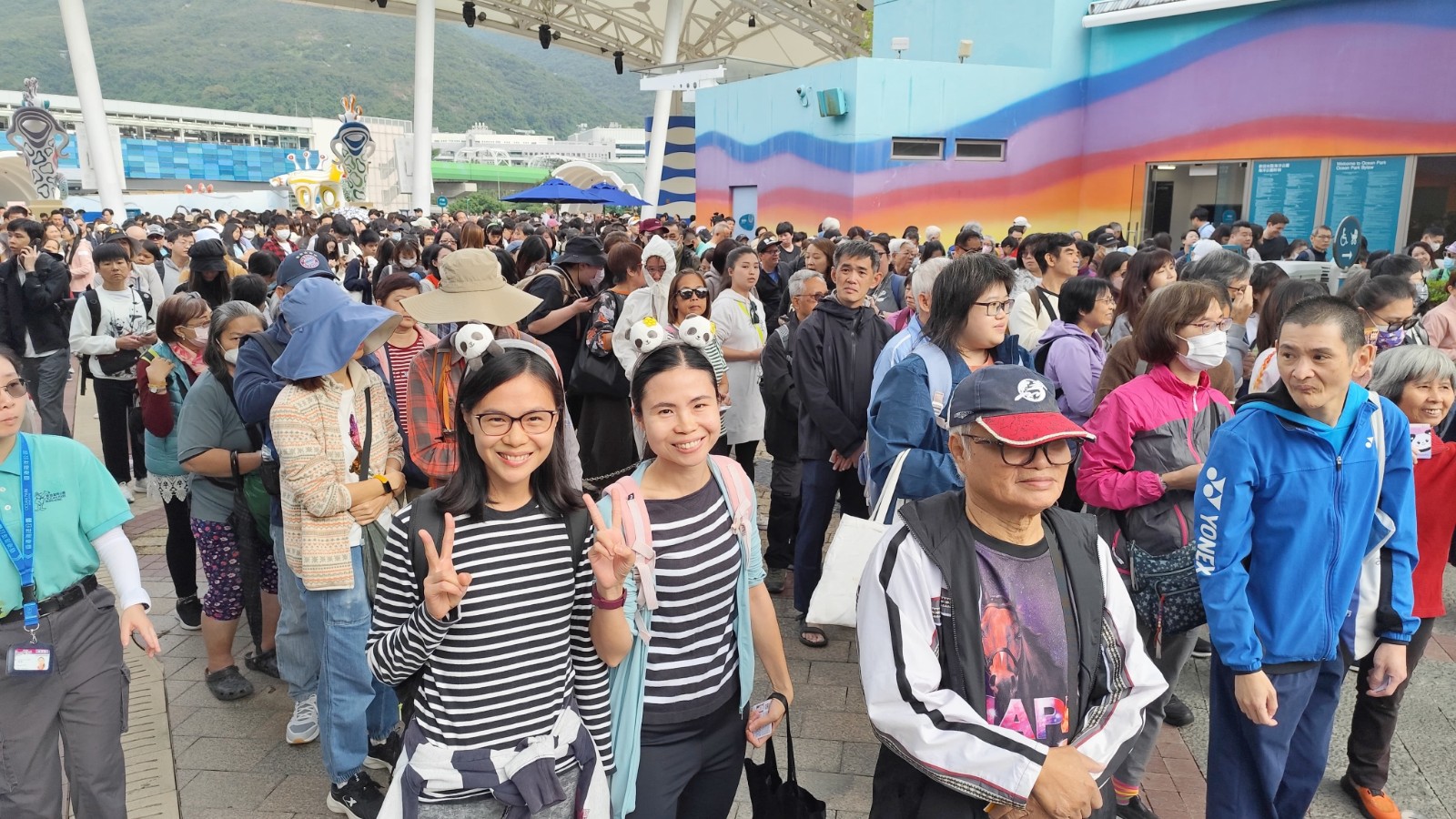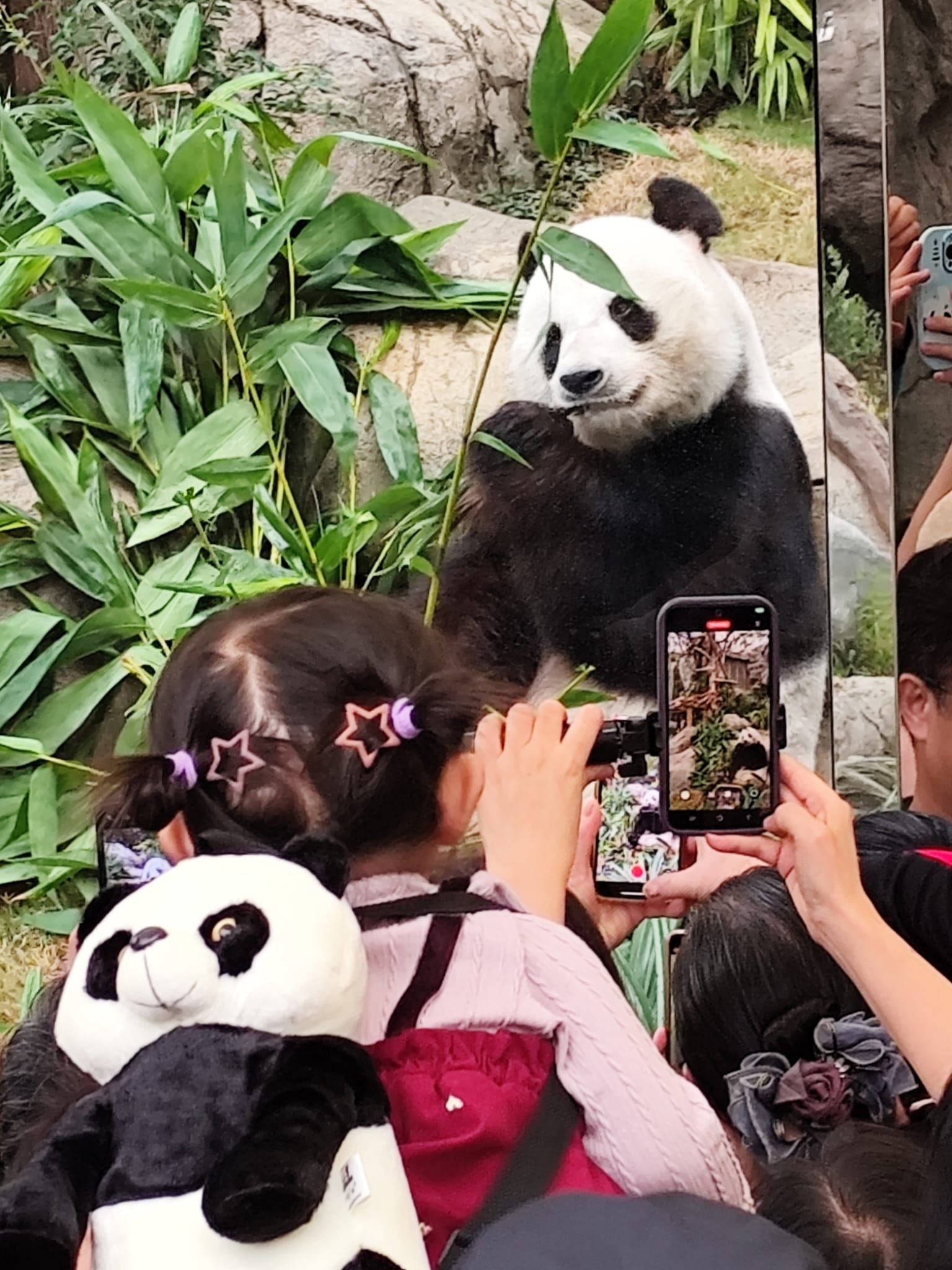 葉先生說:「因為太太喜歡大熊貓,所以自己也陪伴一齊『追』,之後自己也喜歡了大熊貓,兩公婆平均每年來海洋公園看大熊貓逾25次。」土瓜灣居民許太與媽媽和3歲的兒子一起來看大熊貓,主因是兒子非常喜歡大熊貓,加上昨天海洋公園派豬腳薑醋和紅雞蛋,所以專程來沾一下「福氣」。