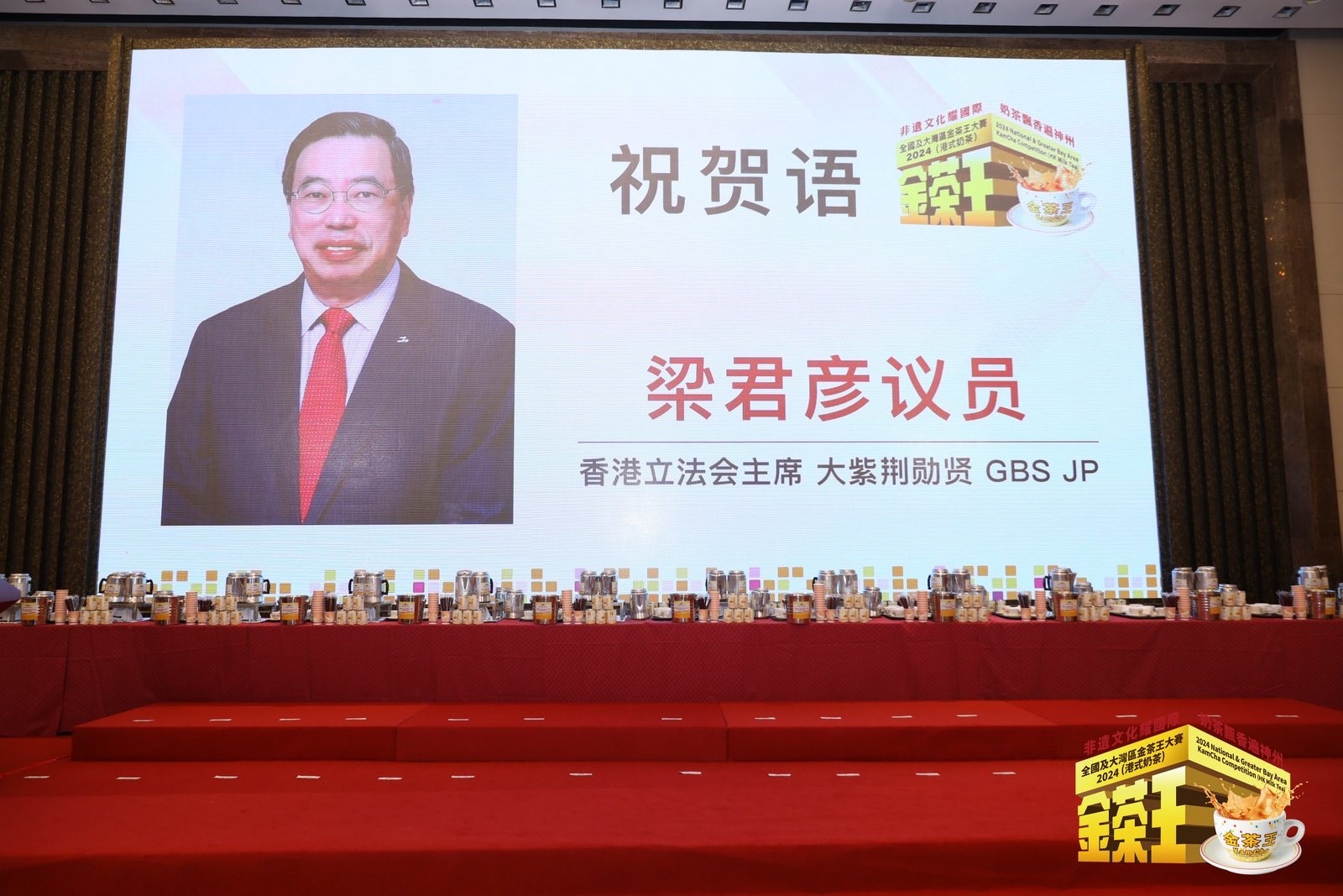 香港立法會(huì)主席梁君彥為大賽錄製了視頻,他表示港式奶茶作為香港非物質(zhì)文化遺產(chǎn),深受內(nèi)地遊客喜愛,為香港餐飲業(yè)帶來經(jīng)濟(jì)效益。立法會(huì)議員積極助力各行業(yè)應(yīng)對(duì)挑戰(zhàn),餐飲業(yè)需多元化發(fā)展,融入大灣區(qū)市場(chǎng)。並表示金茶王大賽 15 周年於廣州舉行,對(duì)推廣香港非遺文化意義重大。