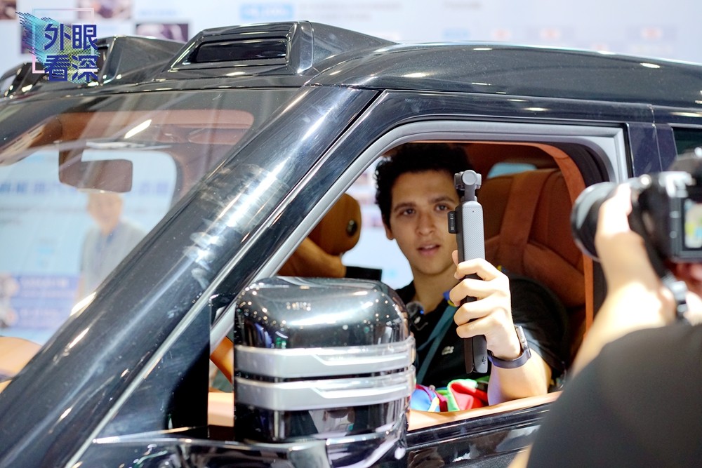 在這裏,可編程操控的無人機(jī)成為學(xué)生的課堂學(xué)習(xí)同伴,綠色清潔能源的電動車又拓展了無人駕駛技能。第一次參加高交會的阿曼友人Nasser也欣然接受Chico的邀請,坐進(jìn)電動車駕駛室一同感受撲面而來的「未來感」。